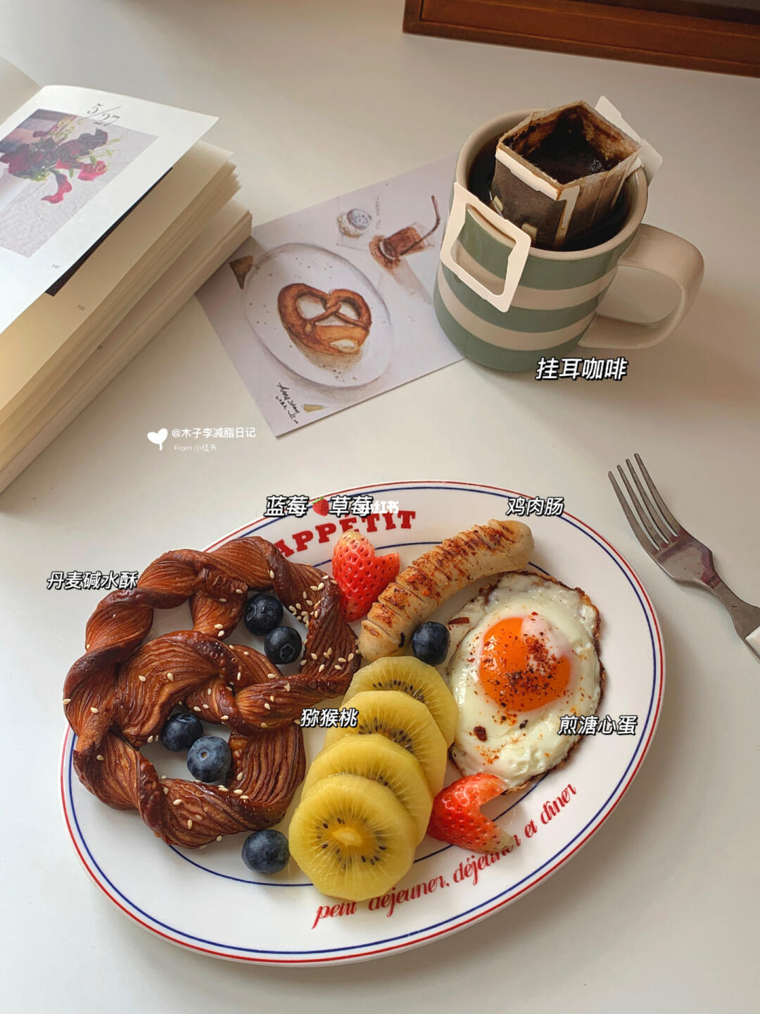 ▪️今日体重:92斤 ▪️已减28斤 ▪️目标:85斤 —— 早餐:碱水丹麦酥|鸡肉肠|煎蛋|猕猴桃🥝|蓝莓|挂耳咖啡|草莓🍓 午餐:土豆粉|手抓饼|菠萝蜜 喝水量💧2000ml➕ ——