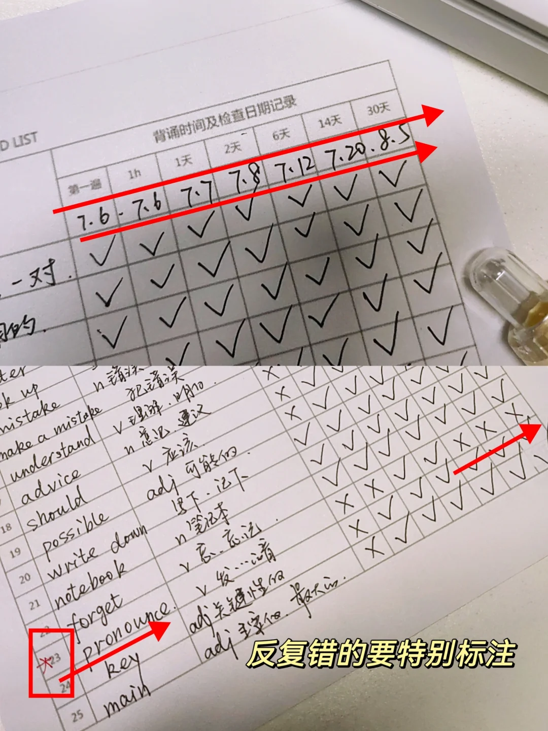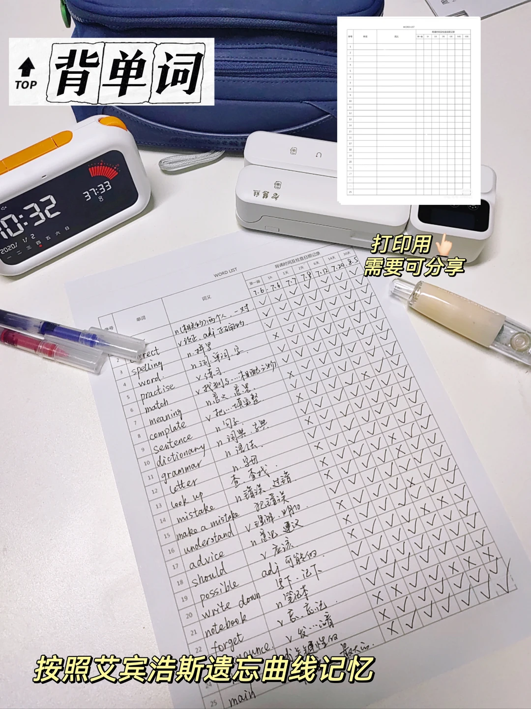 然后按照表格时间进行默写