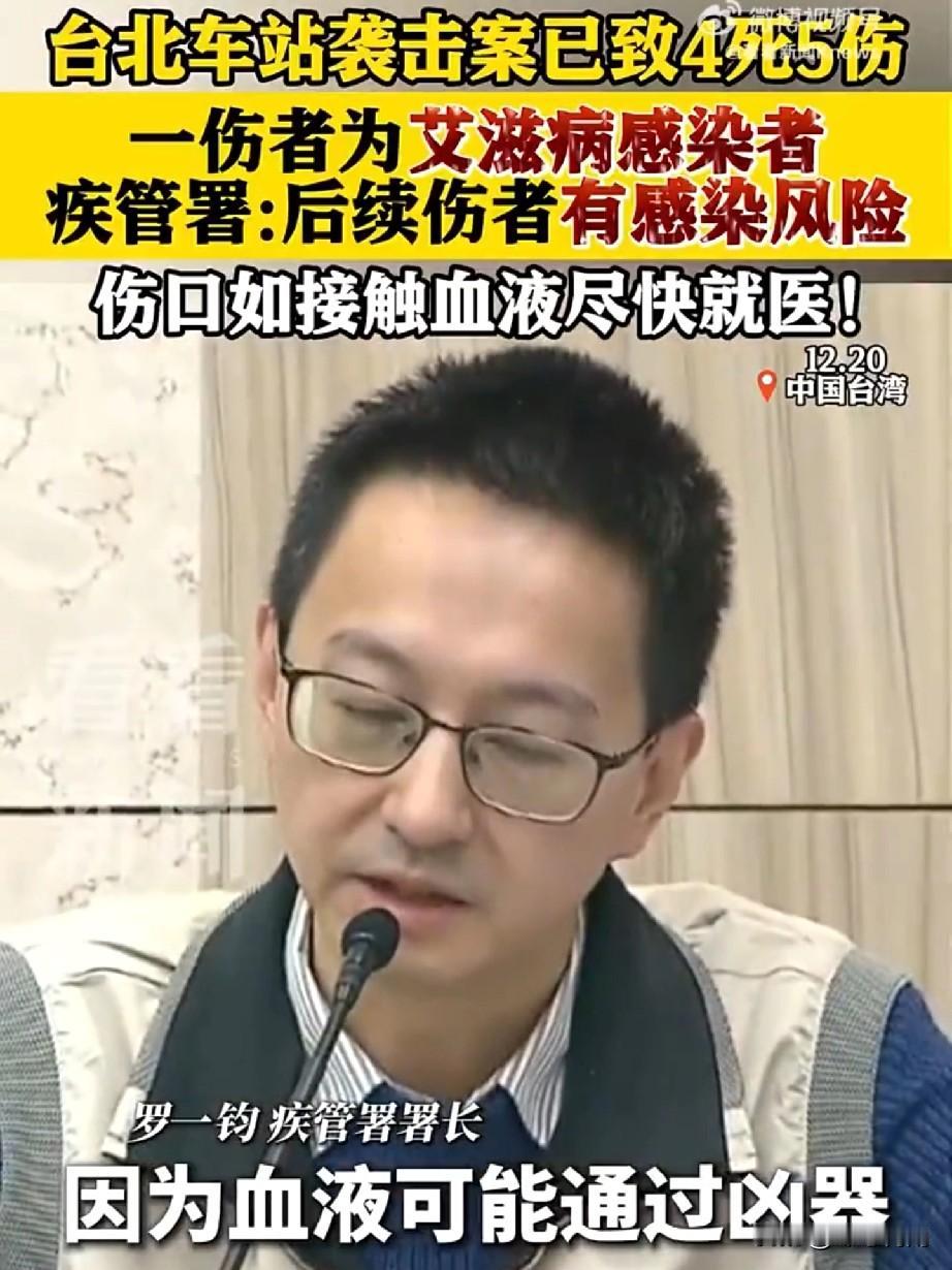 台北这砍人案,后面还跟着个让人头疼的情况... 刚刷到新闻说,昨天被砍伤的人里有一个是艾滋病患者。卫生部门今天火急火燎开记者会,说这人一直按时吃药,病毒控制得"测不到",按道理不会传染。但万一现场有血溅到路人眼睛里、伤口上呢?所以紧急喊话:凡是沾到血的,72小时内赶紧上医院! 这...谁能想到啊?本来就够倒霉的了,走路上被随机砍,现在还出这档子事。昨天现场血糊拉碴的,好多热心群众冲上去帮忙,万一真有人因此中招,也太冤了。 官方提醒是负责,但就这么把患者隐私捅出来,总觉得哪里别别扭。