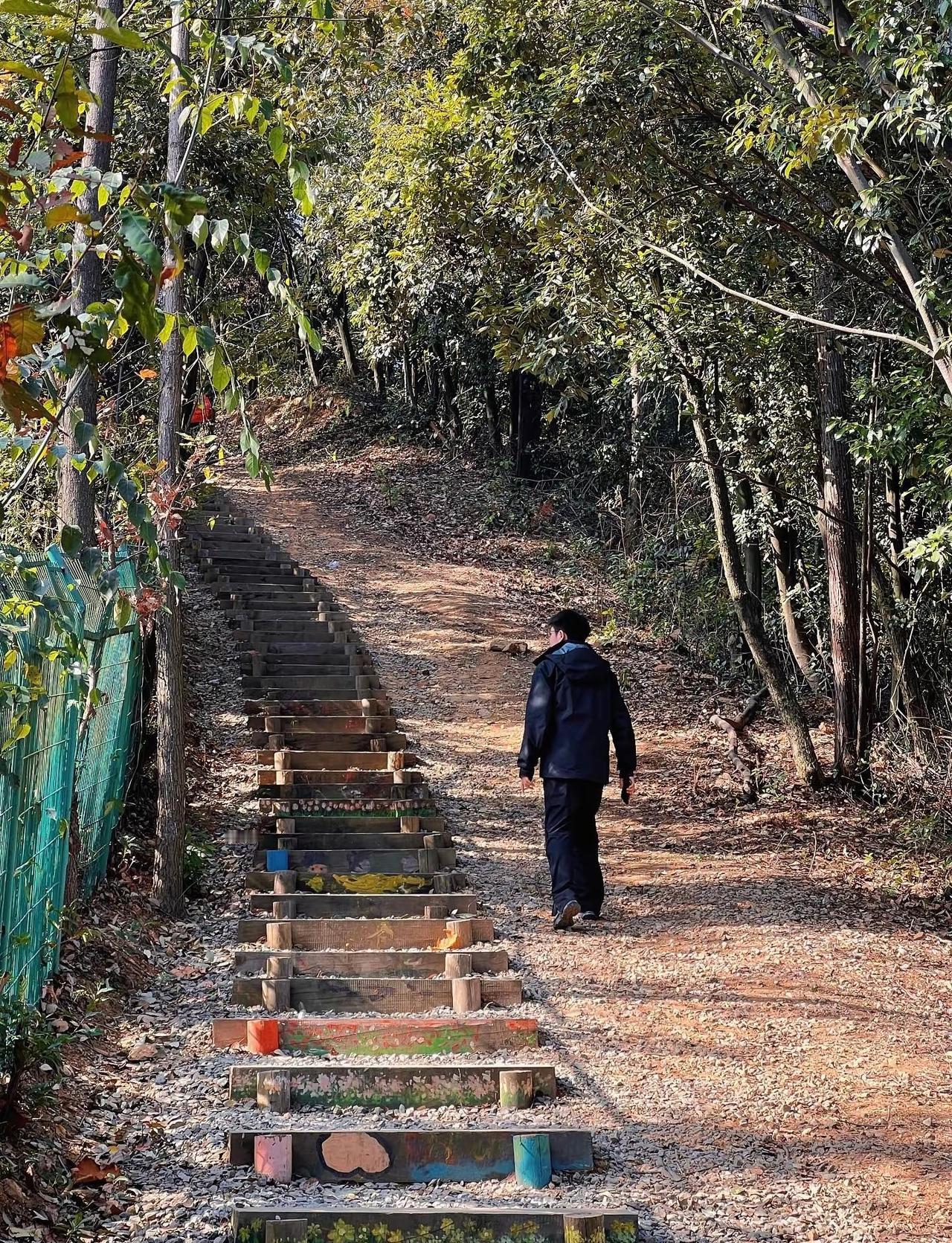 比起岳麓山,我更爱这条人少好爬的徒步路线 🚶🏻…周末避开密集人流!!享受别墅区的私享登山步道(云麓七里)🗺️这条3.5km的城市徒步路线 轻松登顶!全程木栈道和石子路 步道设计体验感满分!在绿植环绕的树林间穿梭 简单又不失乐趣!新手和亲子友好 好适合阳光周末来山野吸氧 超chill🍃山下别墅区也很美!在一栋五层中式合院别墅里免费看了场书法艺术展!四层空间挂满了栖居主题的墨颜书法 🧧感受笔墨间韵律 意趣飞扬!!暖阳光影照进屋 投在卷轴上 🏡好美好温馨…📍导航:麓隐青竹湖山湖会客厅(全程3.5km门票免费!停车5r可开车进入,山湖会客厅内可领取登山攻略!边走边玩边拍照大概2h左右!平缓好爬完全没压力。手绘阶梯和山顶很适合拍照打卡 超出片!)小众景美好爬的宝藏徒步小山!适合反复刷!!旅行vlog 城市玩乐攻略 户外徒步
