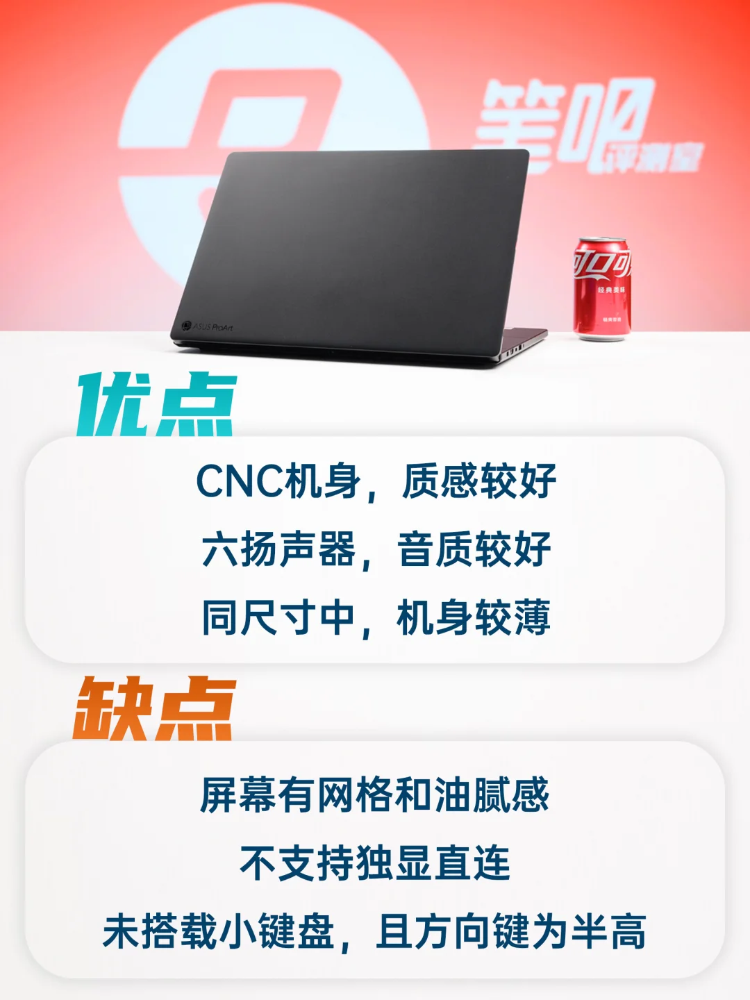 在我看来,ProArt系列在某些配置上没必要非得“特立独行”一把,比如屏幕没必要用触控(有网格),独显直连没必要不支持(幻是支持的),如果能把这两个缺点补上,相信这台电脑的竞争力能更上一层楼。[吃瓜R]