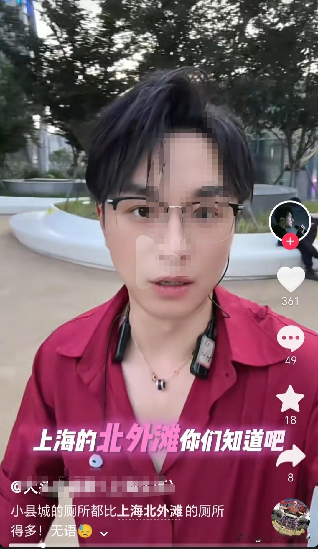 有一个经常在上海北外滩搞直播唱歌的外地人发视频吐槽上海的北外滩为啥厕所那么少?他说他们老家的小县城里的厕所数量都要比北外滩多的多。有网友问他那你为啥不去老家的小县城的厕所旁边搞直播唱歌呢?那样上厕所不就非常方便了?上海的网友们,请问北外滩的厕所真的很少吗?