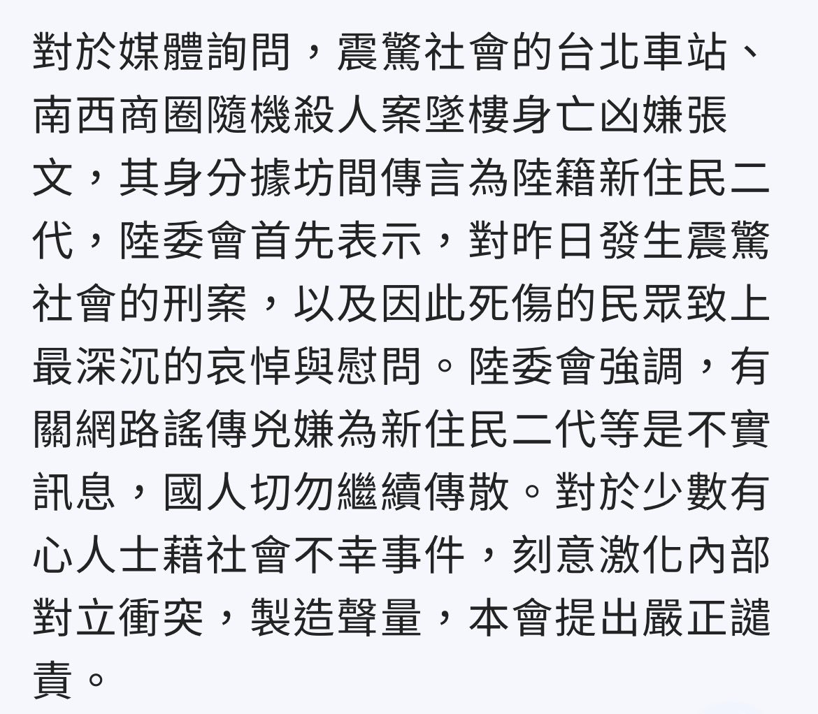 陆委会也终于辟谣了:凶手张文的妈妈不是陆配!