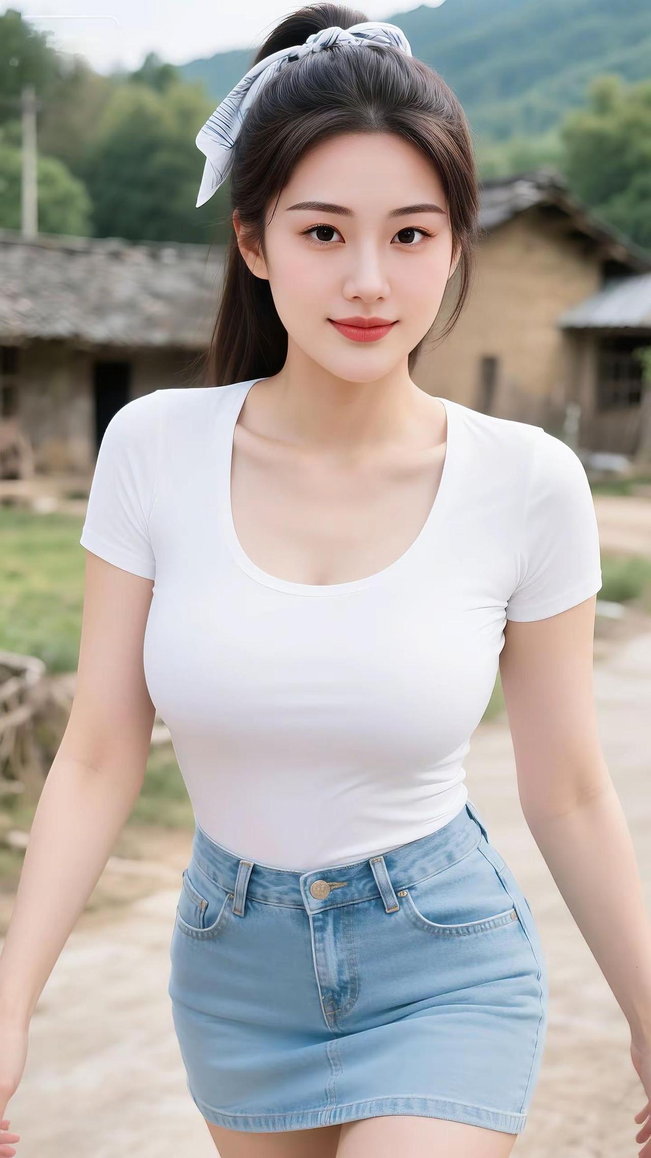 扎个丸子头,赴一场乡村的浪漫紧身牛仔裤 性感丰满美女