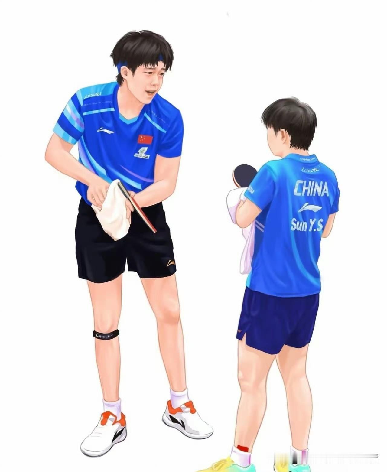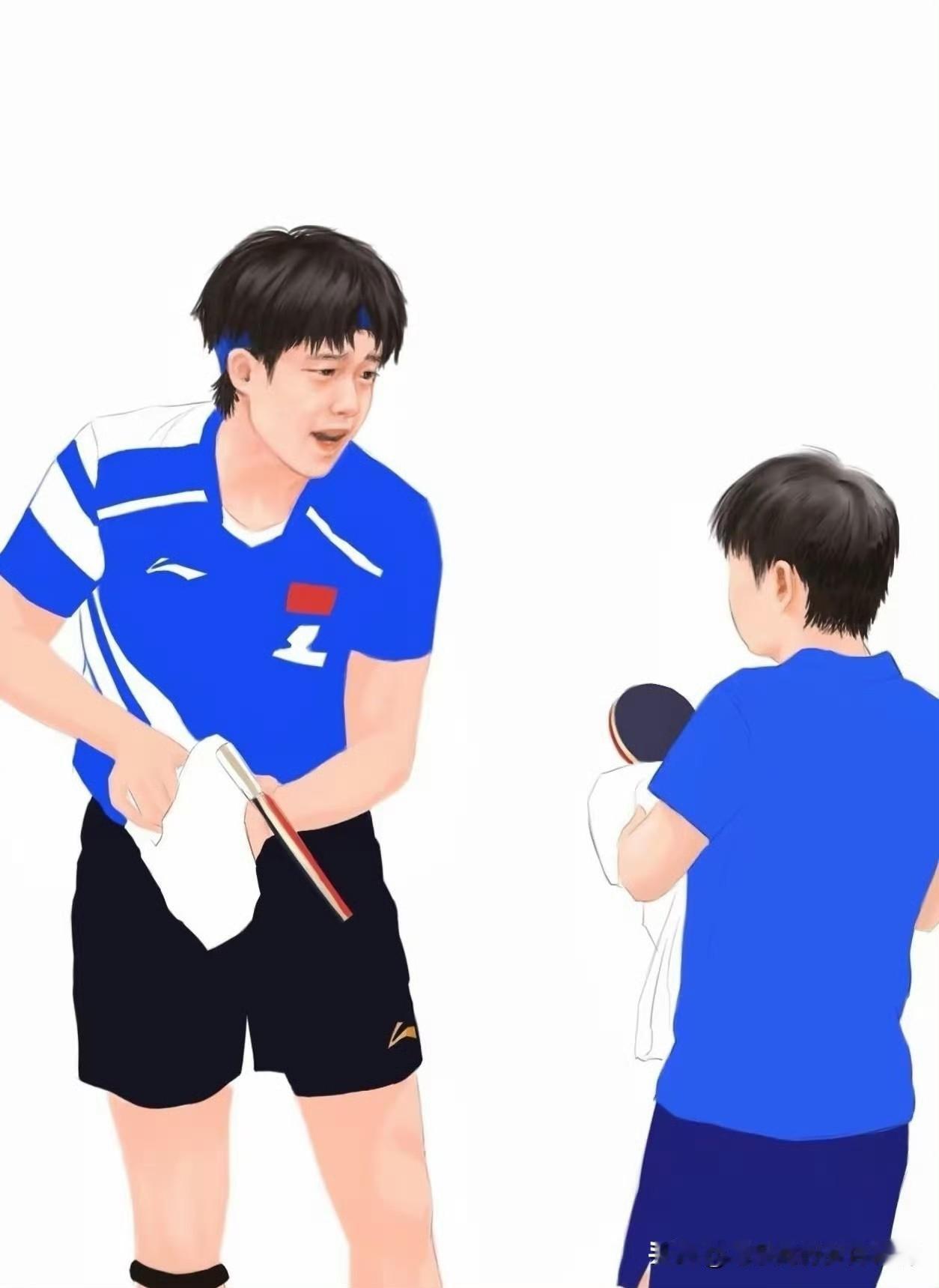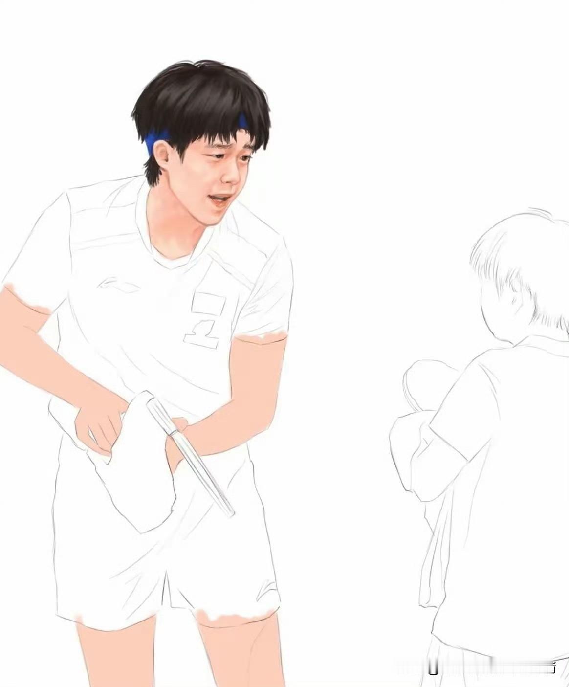 这幅描绘王楚钦与孙颖莎赛场互动的画作堪称神作,画手的笔触精准又传神~把王楚钦脸上皱皱巴巴的神情,将他的担忧、怜惜与疲惫刻画得入木三分,甚至连他左臂肿胀、两臂粗细不一的细节都清晰的还原了。 孙颖莎的侧脸虽只用淡笔勾勒,却把她乖巧聆听的神态展现得淋漓尽致,即便没画出标志性的葡萄眼,那份灵动的眼神感也仿佛跃然纸上,这般细腻的刻画,不愧是名副其实的灵魂画手。 网友创作的这幅画实在太传神了!把大头的心疼和疲惫全在脸上,细节还抠到了手臂肿胀,这画功称得上是灵魂画手!