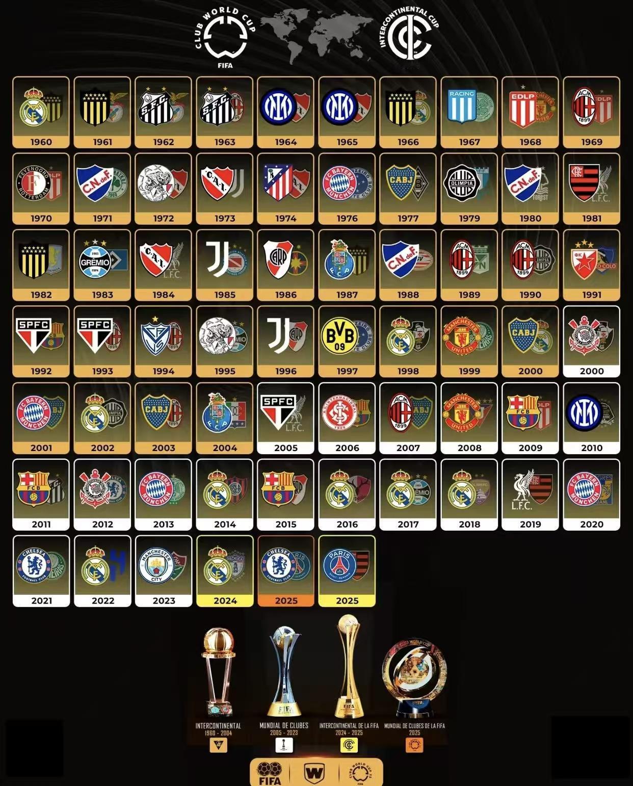 简单告诉球迷小白,洲际杯的来来回回! 洲际杯大体分四个部分: 1、老洲际杯 1960~1980年 第一届冠军是皇马 2、丰田杯 1981~2004年 第一届冠军是弗拉门戈 3、老世俱杯 2005~2023年 第一届冠军是圣保罗 4、新洲际杯 2024~ 第一届冠军是皇马 国际足联为了搞新的世俱杯,而把原来的世俱杯变成了洲际杯的一部分,加上原来的老洲际杯和丰田杯,一起全部纳入洲际杯的历史。