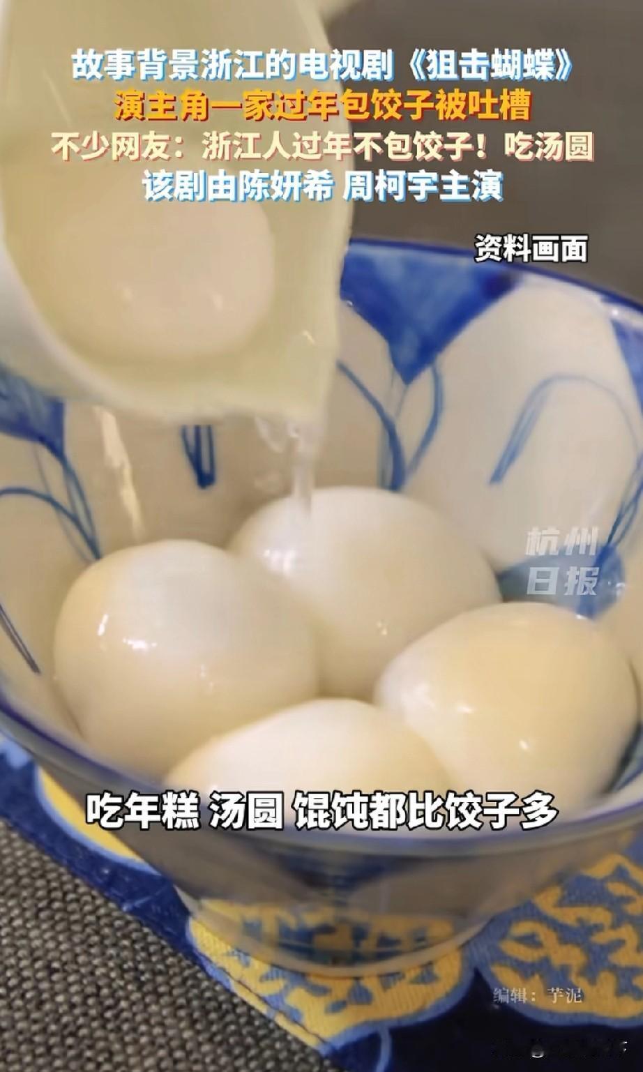 浙江人过年不吃饺子,饮食也有地域性特色,不是一概而论 今天12月21号是冬至,北方省市民间有冬至吃饺子不冻耳朵的说法,但是在南方地区,冬至的饮食习惯也不一样,吃年糕,汤圆,馄饨比吃饺子多。 杭州日报报道,在电视剧《狙击蝴蝶》里,以浙江为故事发生背景地,一家人过年包饺子,引发浙江网友吐槽,他们过年不吃饺子,除夕的大餐都是以炒菜为主,辅助汤圆年糕等,饺子在浙江不是主流饮食。 中国地大物博,南北饮食习惯差异也是非常大,饺子在北方地区特别流行,但是在南方地区,老百姓吃的比较少,地域性饮食习惯不一样,不能一概而论,影视剧编剧也要多了解地方饮食习惯,才能让观众真正接受。北方吃饺子 南方人煮饺子 饺子文化差异 北方初一吃饺子 吃饺子禁忌 浙江饮食 浙江日常饮食 浙江饺子 浙江文化差异 浙江人过冬 浙江过年 浙江过年美食
