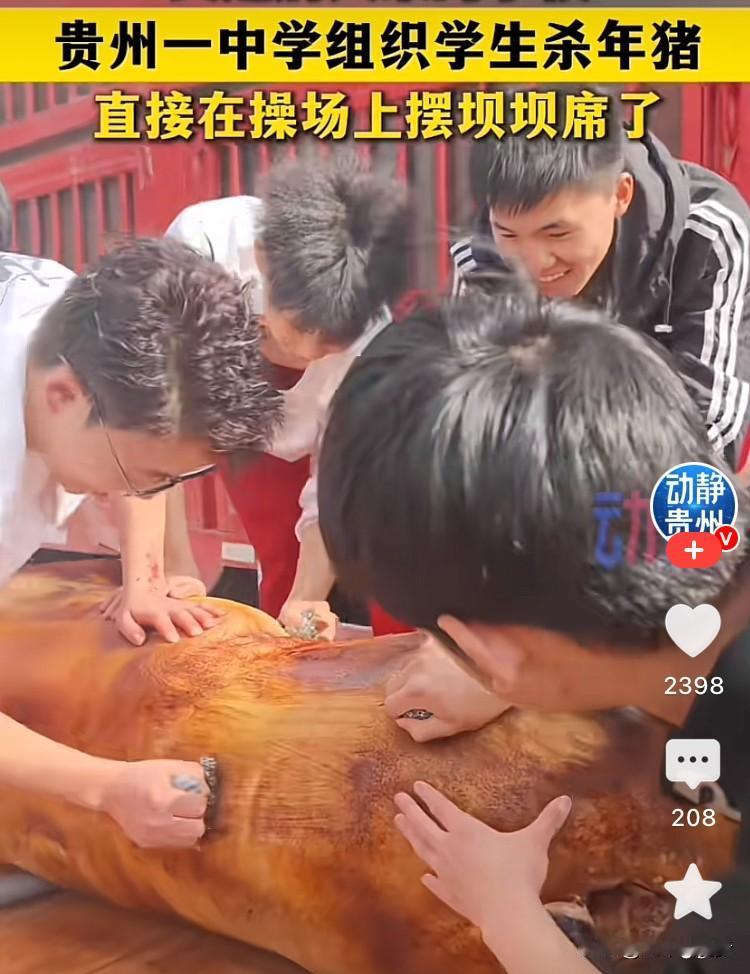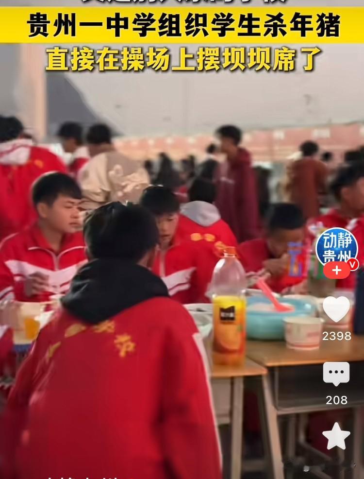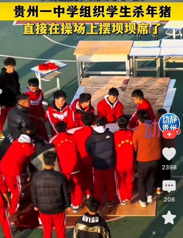 又是别人家的学校!近日贵州六盘水众泰学校的操场彻底变身“烟火小江湖”,一场杀年猪、摆坝坝席的热闹活动,让全校师生沉浸式解锁了冬日限定的温暖与滋味。 活动现场氛围感拉满:老师们协同乡亲们娴熟处理年猪,分割猪肉、熬煮高汤分工有序,同学们或好奇围观学习,或主动帮忙摆桌椅、递碗筷,有的还在处理好的猪身上写字,仪式感十足。操场中央整齐排布着餐桌,热气腾腾的炖猪肉、香炒猪肝、鲜美的猪血旺搭配家常小菜,再摆上清爽饮料,构成了最诱人的校园盛宴。身着民族服饰的老师为同学们盛汤添菜,师生围坐一桌大快朵颐,欢声笑语伴着饭菜香气,满是久违的烟火气与归属感。 这场看似简单的坝坝席,藏着最生动的教育密码。既让同学们近距离感受了杀年猪这一传承已久的民俗文化,了解食物从田间到餐桌的全过程,更在分工协作、共享美食中,拉近了师生距离,培养了珍惜粮食、乐于分享的品格。没有精致的摆盘,却有最纯粹的快乐;没有复杂的流程,却有最真切的温暖,这样有温度、有烟火气的校园活动,难怪让网友直呼“实名羡慕”! 众泰学校篮球队 众泰学校篮球队 六盘水蛋糕学校 六盘水学校 盘州书院学校 豪迈学校 青岩学校 六盘水驾驶校
