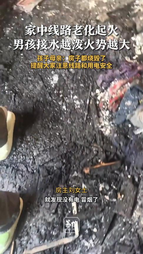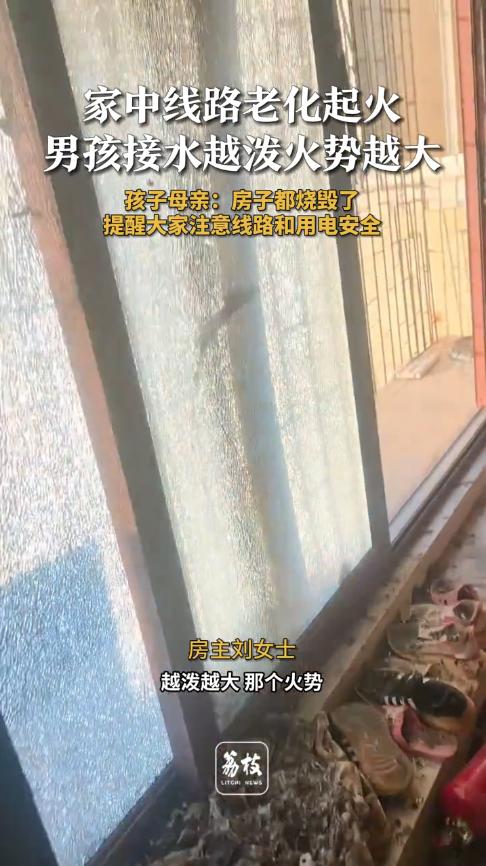 “悲剧还是发生了!”12月16日,广东韶关,一小伙在家吹头发时,发现吹风机没有电,出来检查后发现线路冒烟了,他急忙接了两桶水扑火,没想到,火势却越泼越大!最终房子被严重损毁,几十年的辛苦白费。网友:必须先拔电! 现在人们装修房子,对于电路这一块非常讲究,会花不少心思,毕竟电路一旦出了问题,不仅影响正常生活,还可能引发事故,而对于那些老小区,也要定期检查线路才行。 刘女士和家人努力了几十年,终于买下了一栋房子,一家人其乐融融的生活了十多年,没想到却发生了这种意外。 当时孩子在家里刚洗完澡,就插上吹风机吹头发,结果吹风机却没有电,这令小伙非常好奇,因为他确定吹风机并没有坏,于是便出来检查线路。 结果,小伙发现有一根电线冒出白烟,他觉得必须尽快把火扑灭才行,于是去卫生间接了两桶水,对准起火的位置泼了上去。 可令小伙没想到的是,这火非但没有灭,反而迅速蔓延起来,最终场面彻底失控,邻居发现后急忙报警,最终在消防员的努力下将大火扑灭。 然而房间内已是一片狼藉,家中物品被严重烧坏,没有几十万是修复不好的。 在此提醒大家,发现电路起火后,一定要先把电源切断,然后再去灭火,如果直接浇水,反而会加重火势的蔓延! 信息来源:《家中线路老化起火,接水灭火却越泼越大。》纵览新闻