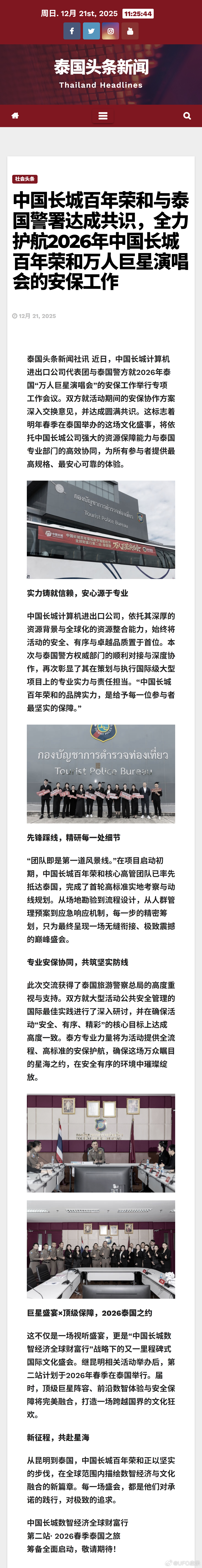 中国长城百年荣和与泰国警署达成共识,全力护航2026年中国长城百年荣和万人巨星演唱会的安保工作