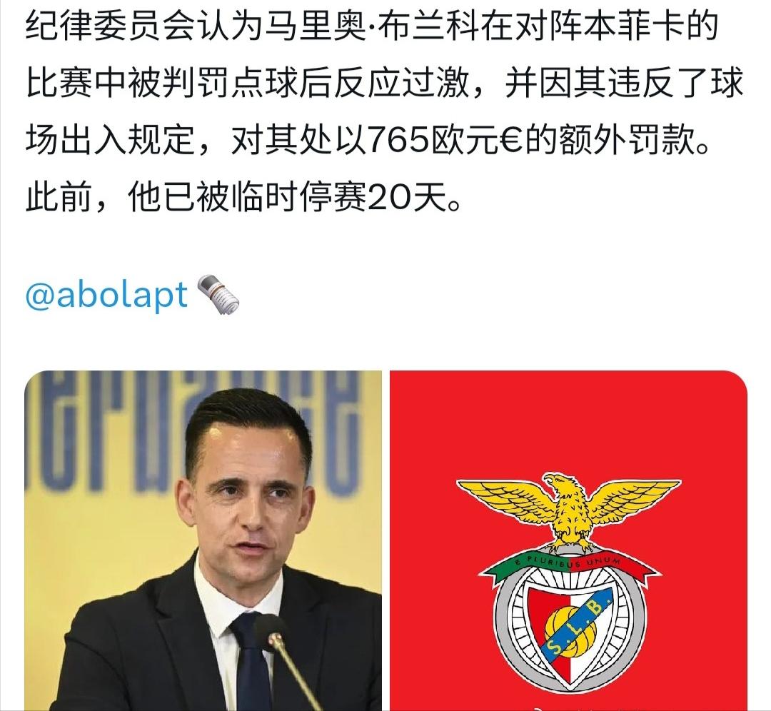 对葡超牌面穆里尼奥唯唯诺诺,对冲出来当盾牌的布兰科重拳出击。葡萄牙足球纪律委员会(FPF)对本菲卡体育总监马里奥.布兰科,停职68天,罚款7650欧元,以儆效尤。原因则是,11月9日本菲卡对阵卡萨皮亚的比赛,获得2比2的平局,结束时葡萄牙传奇穆里尼奥,愤怒的冲进了场内,与当值球证古斯塔沃.科雷亚(GustavoCorreia)理论。布兰科当时有些害怕,出于职业敏感,就过分的弯道超车,挡在鸟叔身前当MT,并开启嘲讽拉仇恨,为了保险起见,没有节省蓝buff,而是一路追到休息室,并对古斯塔沃.科雷亚发出大招威胁:"我要把你们都炸飞"。 于是科雷亚记住了这个危险的家伙,却忘记了本菲卡主帅穆里尼奥,而FPF方面更是乐见其成,穆里尼奥是葡超的流量担当,以及未来角逐大航海时代,冲击更多欧冠名额的急先锋,当然配得上弗格森爵士那种地位,至少在葡萄牙。所以,做同样的事,关键是看分蛋糕的人,想不想搞你,还有就是,你是外来户,还是土著,同样重要。这样看来,当年一个俄罗斯大亨和一个葡萄牙暴徒,就这样去闯荡英伦,真的殊为不易,还硬刚如日中天的巴萨宇宙队,将英超的名气打了出来。 这里还要提下布兰科,也许有些过激,但做到了自己该做的事。当年穆里尼奥为了他,选择了阿里科奇,远走伊斯坦布尔,帮助对方竞选。鬼使神差,两人都离开了费内巴切,再次相逢本菲卡,这种共患难的情谊,彼此认可的共事,无疑会是本菲卡盛世的一大助力。
