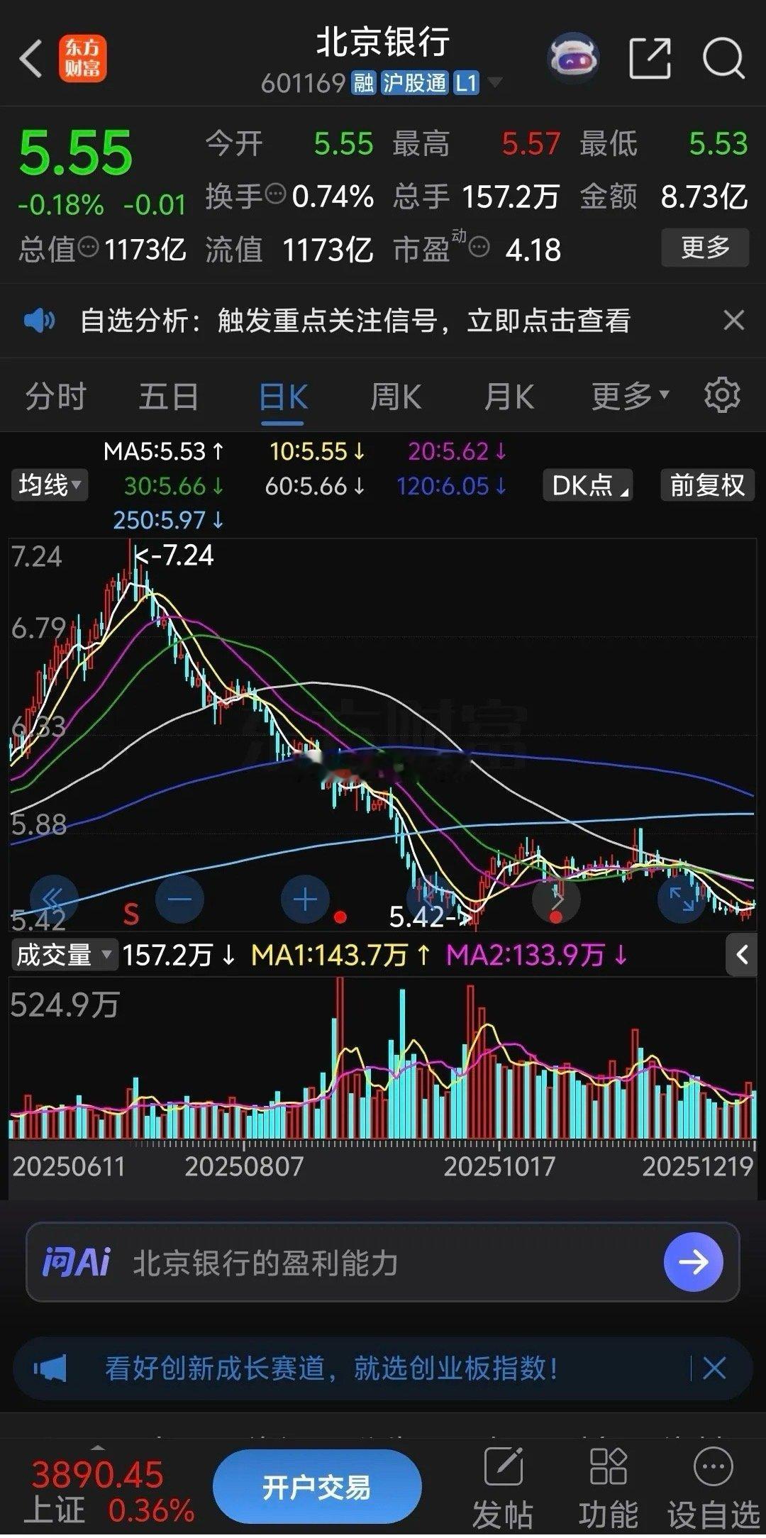 四大最惨银行股还会不会继续下跌,民生银行市净率仅仅只有0.30,华夏银行市净率仅仅只有0.35,光大银行市净率仅仅只有0.42,北京银行市净率仅仅只有0.42,这个估值只有在熊市底部的时候出现过,而且这几个估值已经非常接近这个银行股历史最低的市净率,那个时候市场非常悲观,沪市成交额仅2000亿左右,然而现在股市天天火爆成交,两市动不动就是两万亿,其实这一波下跌不仅仅是四大最惨银行股下跌,很多蓝筹股都惨烈连续下跌,这是市场风向的问题,很多资金报团爆炒题材股打压四大最惨银行股,而且现在市场存款利率非常低,这几个银行股横盘震荡了几个月继续下跌空间非常有限,长期价值投资者千万不要割肉了。