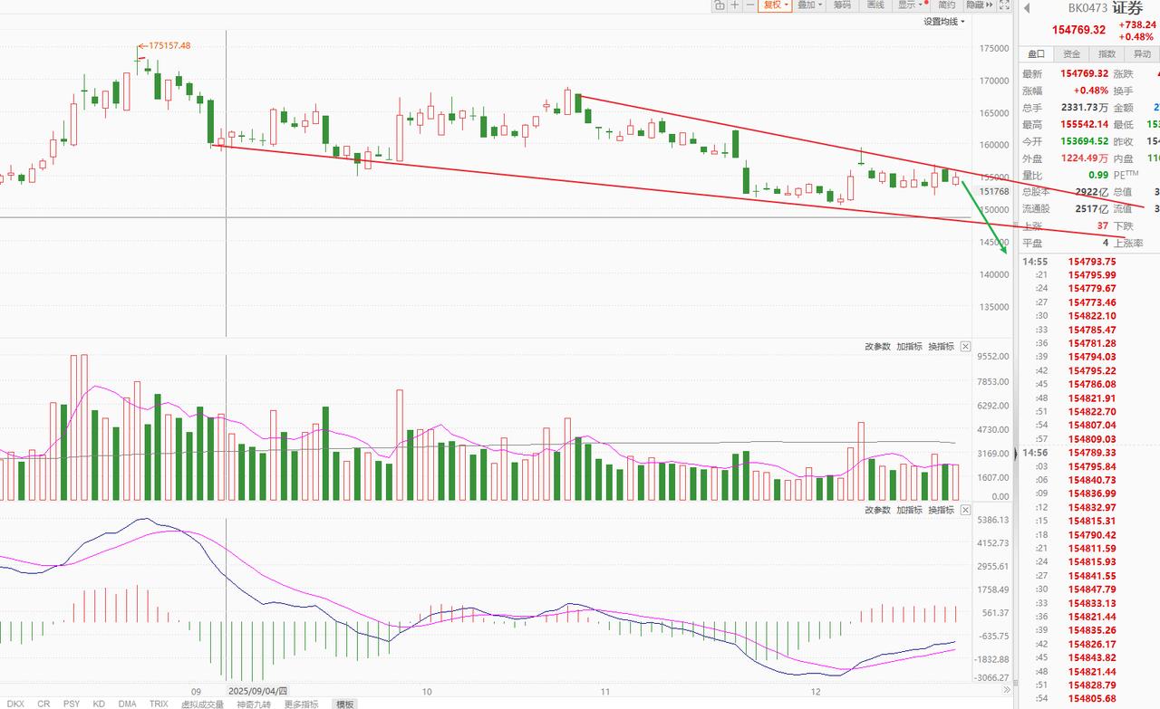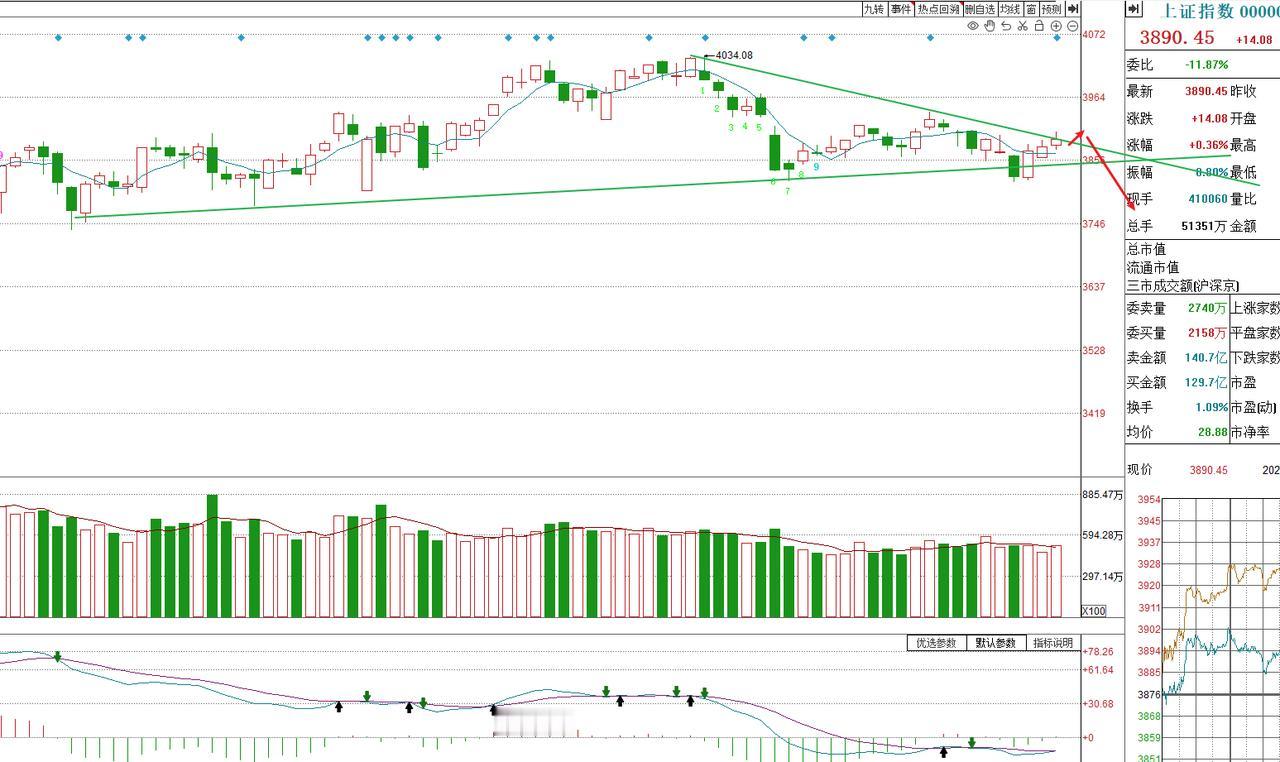 谨防下周新一轮调整! 下周又要开始选择方向了 技术面4034和3936形成的压力是强大的 底部多点组成的防守线越来越弱 现在就是三角形收敛 可能有些人认为也许向上呢。 我的答案是向上的变盘概率不足5%。 本周三的探底回升,更多的是护盘,防止盘面失控 周四银行的护盘进一步说明 周五普涨成色太差,诱多意义十足。 下周商业航空剧烈分化,关注资金的逢低动向 另外就是看证券板块,压力线是巨大的,趋势向下通道明显 过去两周大盘动不动普跌,证券护盘明显,现在到了趋势性的上轨 下周也要选择方向了。 控制好仓位,等待下一次的情绪冰点