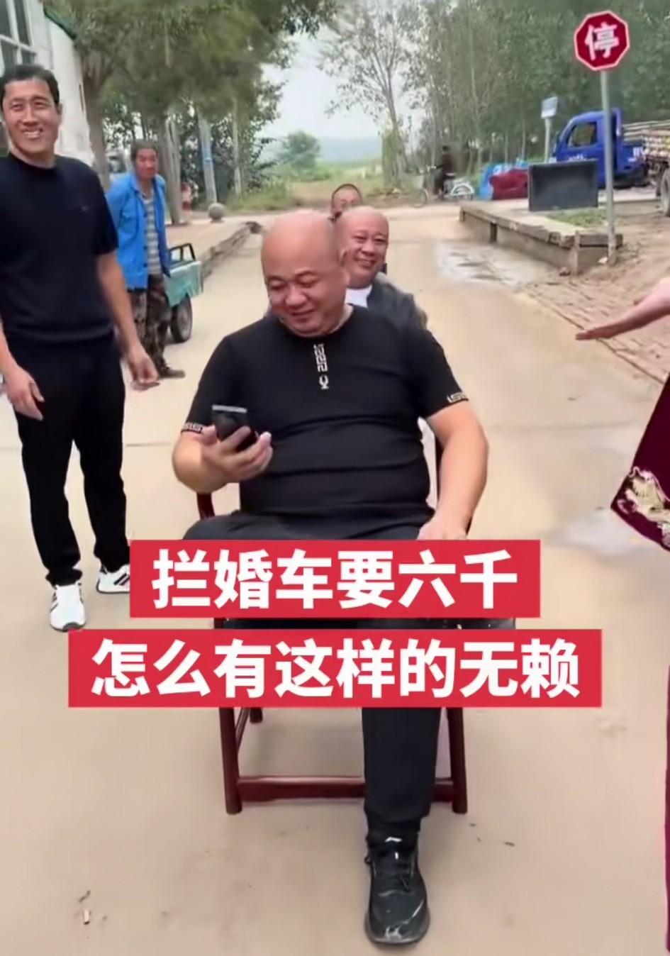 看着都是些上了年纪的老人,白活那么些年,还笑得出来,真是为老不尊,让人不齿。还拦婚车要六千元,怎么会有这样不明事理的老人,简直是无赖,一点儿素质都没有,本应该给年轻人做榜样的,却还能做出拦婚车的事,他们不知道结婚都要讲究一个吉时吗?