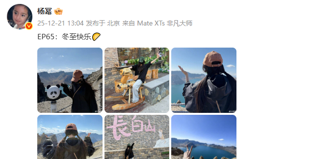 杨幂去长白山了杨幂冬至晒图 冬至快乐🥟