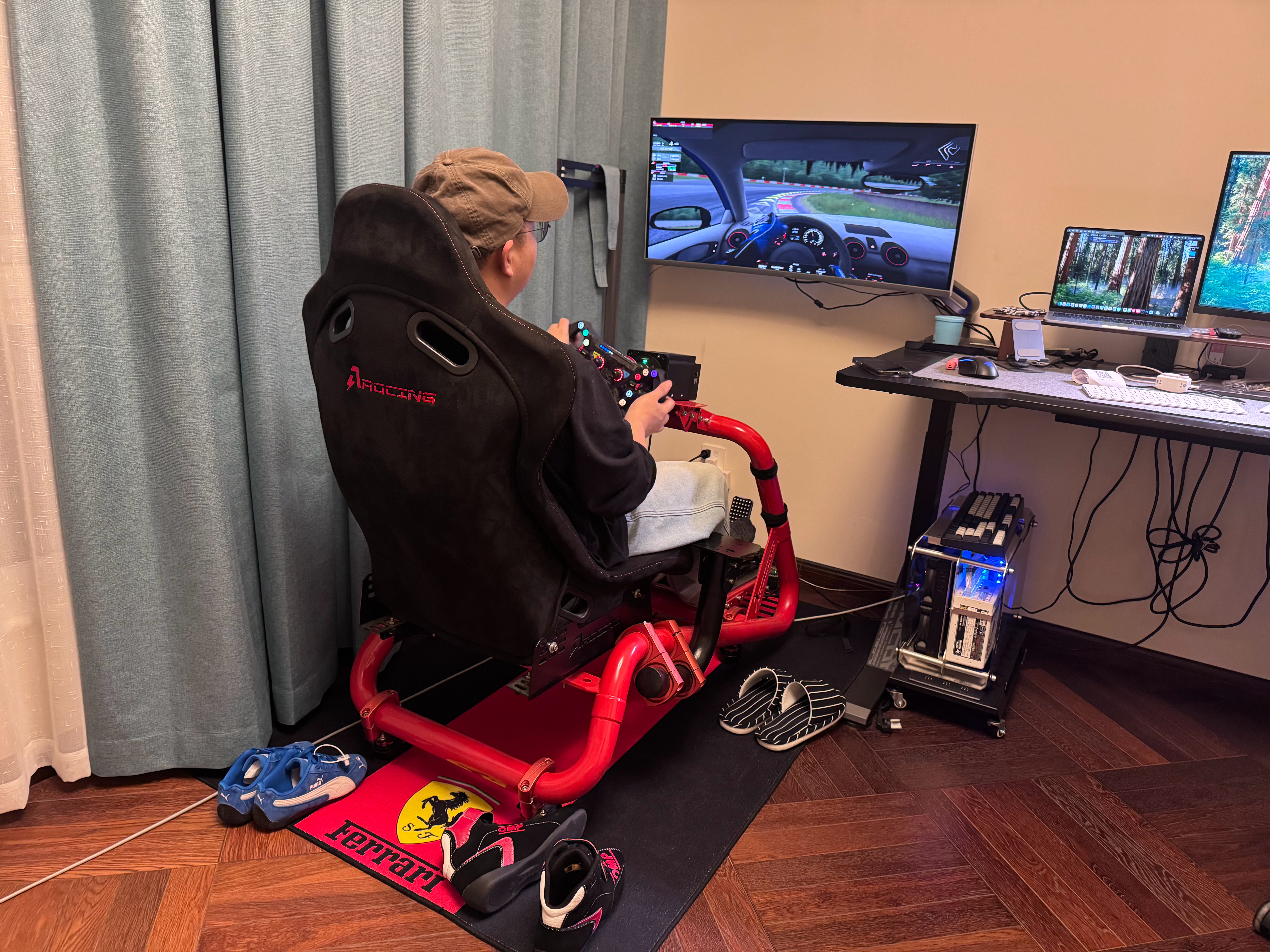 最近有几波朋友来家玩都让他们试了试模拟器(纯新手)发现每个人的风格都不太一样有焊死油门猛干酷酷撞的也有40码过弯80码直道稳当的而我就负责坐在后面观察人性有点意思哈哈哈哈有没有模拟器天才来我家玩啊