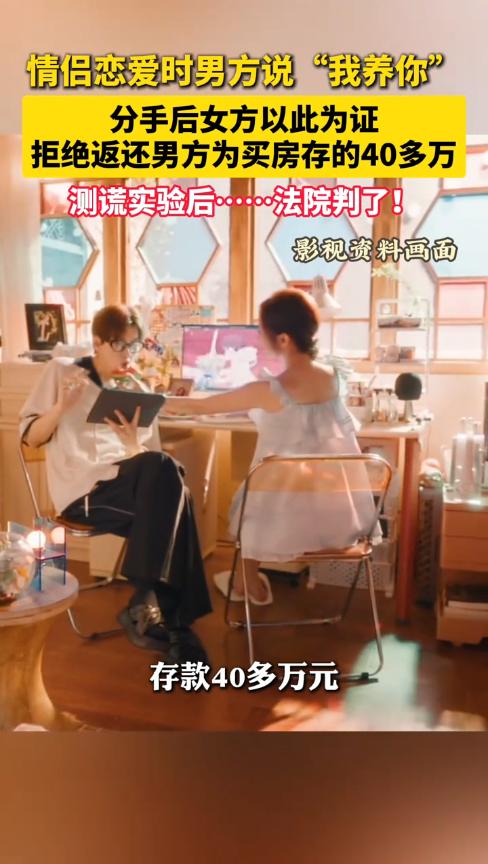 “白嫖上瘾了!”2024年12月,上海,一男子和相恋一年的女友见家长后,对方的态度却突然转变,之后更是不告而别,同时还将自己用于买房的40多万也转走了!男子索要未果后,将前女友告上法院,法院是怎么判的? 情侣谈恋爱期间,总是免不了说一些甜言蜜语,就比如“以后我养你啊”这种,那么分手后,这种话能不能作为法律依据呢? 吴先生和陈女士在同一家公司上班,在日常的交往中,二人的感情越来越好,并确认了男女朋友关系,之后二人便搬到一起同居了。 在之后的一年时间里,吴先生几乎承担了二人生活中的所有开销,而且为了早些买房子,他们还用陈女士的身份信息注册了张银行卡,每个月都往里面存钱。 吴先生格外的努力,短短一年时间,就存了40多万! 2024年10月,吴先生陪着陈女士回了老家,可是女方家长对吴先生的态度并不好,之后一个多月的时间里,陈女士也开始有意疏远吴先生,之后更是将共同存款全部转走,随后人也联系不上了。 吴先生最终只能将陈女士起诉至法院,陈女士表示那些钱全都用于二人的日常花销了,剩下的钱也已经还给了对方,并不承认没有还钱。 由于双方各执一词,法院最终使用了测谎仪,结果吴先生这边全部通过,陈女士则全部没通过,最终法院裁定陈女士返还钱财! 大家觉得法官判得对不对? 信息来源:《上海一对情侣恋爱时男方说“我养你”,分手后女方以此为证,拒绝返还40余万元,法院判了→》杭州日报