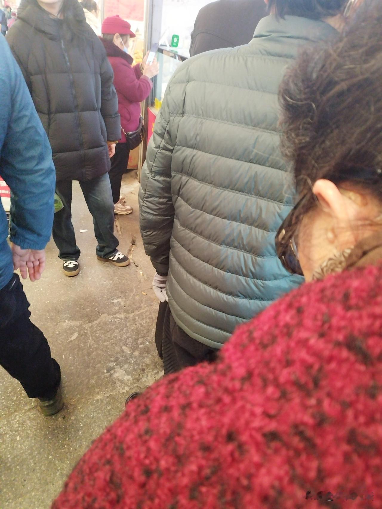 今早去市场,顺便买饺子皮,没想到还要排长队,看来冬至吃饺子深入人心啊。 当前面还有四五位的时候,第二张图中远处那位老人上前插队,因为有点远,还是老人,我就没有吱声~ 当前面还剩一人时,又来一个插队的,这位五十岁左右(图三背包这位),我可就忍不住了,说了声:“请到后面排队。”那位没有搭理我。提醒一下是尊崇本心,如果我再坚持可能火气会上升,冬至是节气,不至于~ 等排到我的时候,我问了老板一句:“老板,有人插队,你们不管吗?”那老板是个年轻人,他笑着对我说:“得管,没看到…”。啥没看到了,做生意的眼观六路耳听八方,糊弄谁呢?但咱也必要较真儿不是,算了,我管不了天下所有事,不生气,无所谓!