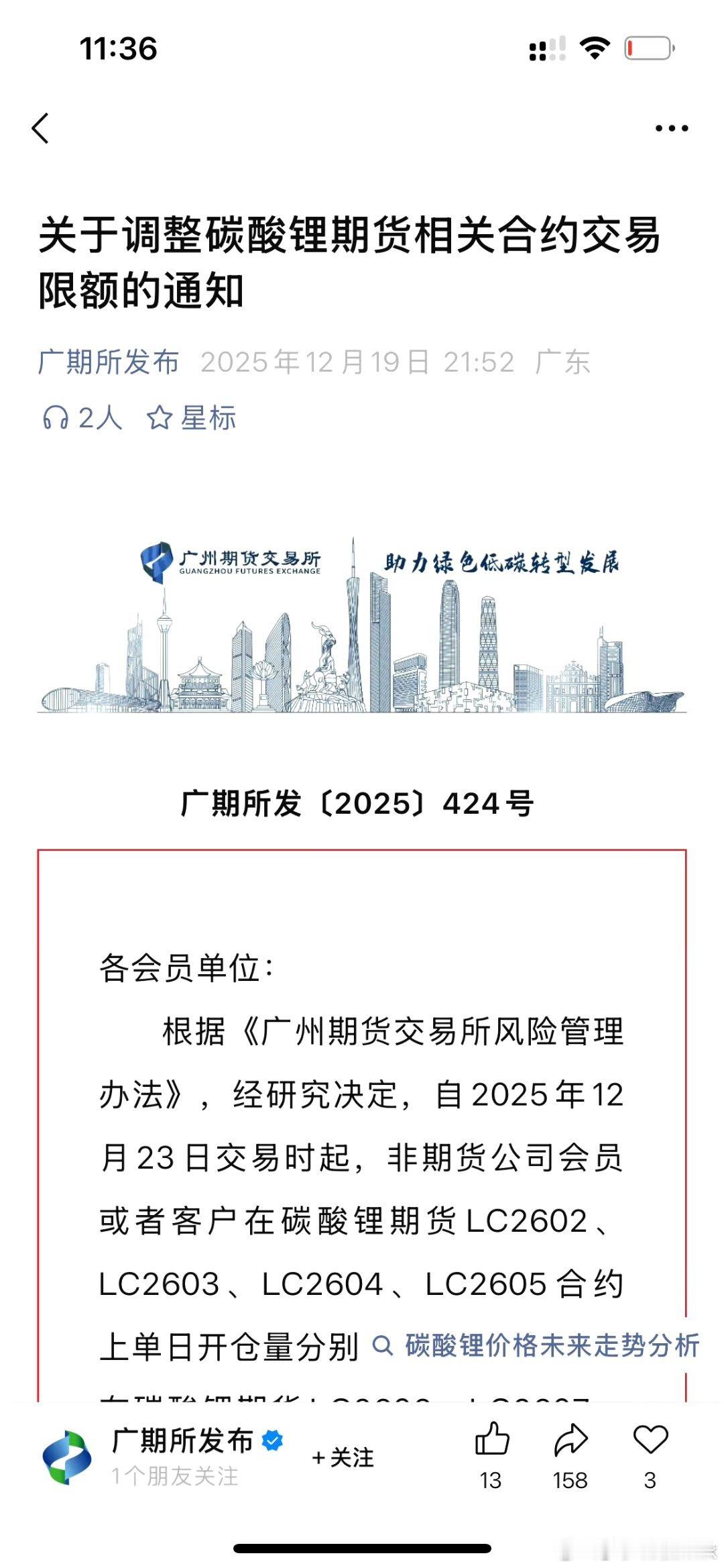12月19日晚上广州期货交易所,再度发布对碳酸锂期货合约的限制。11月21日,我