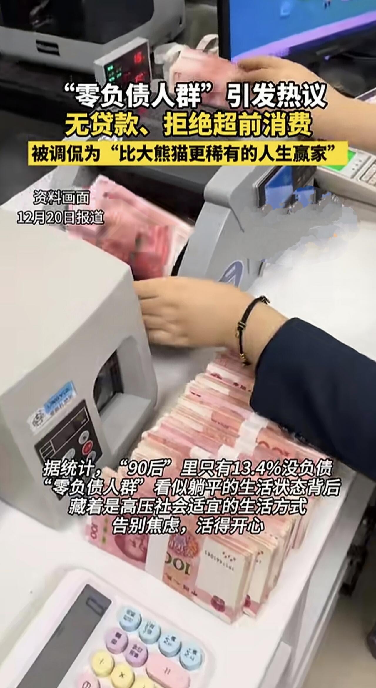 现在网上有人调侃,说“零负债”的人比大熊猫还稀有。不背贷款、不用花呗、拒绝超前消费,好像反而成了人生赢家。 有数据说,90后里只有13.4%的人没负债。看看周围,不是还房贷车贷,就是分期、用着各种呗,好像不欠点钱反而不正常了。 但那些真做到零负债的人,看着像躺平,其实可能是活明白了。他们摸透了这个高压社会的玩法:不让自己被债务绑住,少背点压力,反而活得更轻松、更自在。 不是说不能消费,而是别被消费主义忽悠瘸了。广告天天给你造梦,告诉你“早买早享受”“对自己好一点”,结果东西买了一堆,钱没了,焦虑反而更多了。把日子过成自己能掌控的样子,手里有闲钱,心里不慌,比什么都强。 说白了,欠债不是本事,能挣会花、量力而行才是。在什么都想让你分期、预支的环境里,能守住自己不透支,有时候反而是一种清醒和本事。日子是自己的,舒服不舒服,只有自己知道。