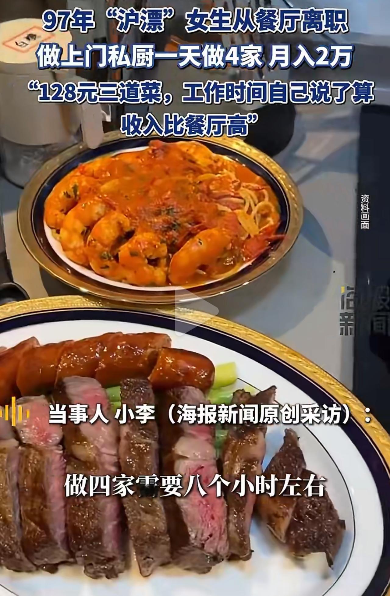 小李说自己在上海每天8小时接4单就能月入两万,听着确实心动,可同行实测才发现,光一道红烧排骨就得做1个半小时,算上通勤、洗碗,一天4单得从早忙到晚,足足12小时以上。她能做到,全靠上海的高消费、扎堆的客户,还有提前备菜、流程标准化的本事,普通想入行的人根本学不来。 一线城市兼职私厨大多月入6000-8000,也就20%的人能靠高价家宴赚到1万5以上,低线城市更别提了——10小时做18道菜才拿850块,扣掉食材、路费,落手里没多少。没人说的还有隐形开销:交通费占两成,厨具坏了要换、健康证要办,单干的话净收入真没多少。 有人怀疑小李的收入有水分,毕竟女私厨还得担心安全、客源不稳定,旺季能多赚点,淡季可能连单都接不到。那些喊着“月入两万”的,都是踩中了一线城市、旺季、会运营、客户多的所有好运,根本不是常态。 想入行的别被高薪迷了眼,先掂量掂量自己能不能扛住每天12小时的累,能不能找到稳定客户。私厨哪是躺着赚钱的活儿,看着光鲜的收入,背后全是实打实的辛苦。上海打工人收入 上海兼职 上海做饭保姆