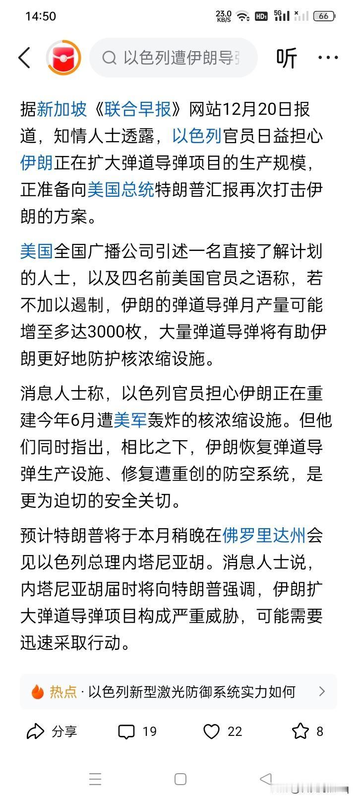管不了? 以色列人现在估计,伊朗在遭到以色列和美国以前的武力袭击后,正在进行的核恢复工作取得了相当进展,因此,又开始担忧起来,并且似乎有意在近期的时间里再次对伊朗进行空中袭击。而美国人也好像也忧心忡忡的认为,伊朗的弹道导弹制造能力有可能提升到每月3000枚的惊人产能。这就是说,好像以色列与美国都有对伊朗进行空中袭击,摧毁或破坏伊朗的核工业和弹道导弹生产制造的动机。 然而,现在的世界上虽然有联合国,但实际上却似乎没有任何机制可以阻止一个国家对另一个主权国家的袭击和破坏。但是,如果从另一方面说,估计核之类的东西与弹道导弹,似乎也不像是自卫防御之类的武器装备。 无论如何,似乎都是各有各的理由和说词,管也不太好管,而且如果没有足够大的力量,更谈不上去管了。所以,只好是大路朝天,各走一边。