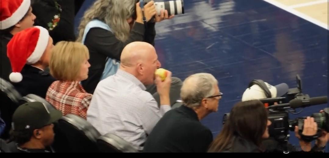 场边鲍尔默吃的啥?也不给比尔盖茨尝尝?自己的主场就是两回事,拿着个苹果就可以到现场看球! 鲍尔默场边补充点能量,为自己的球队挥拳呐喊助威! 真是资本的吝啬!有苹果大家伙一块吃嘛!引援之路总想着捡漏!结果把自己这几年培养的人才换来了一堆老年人!
