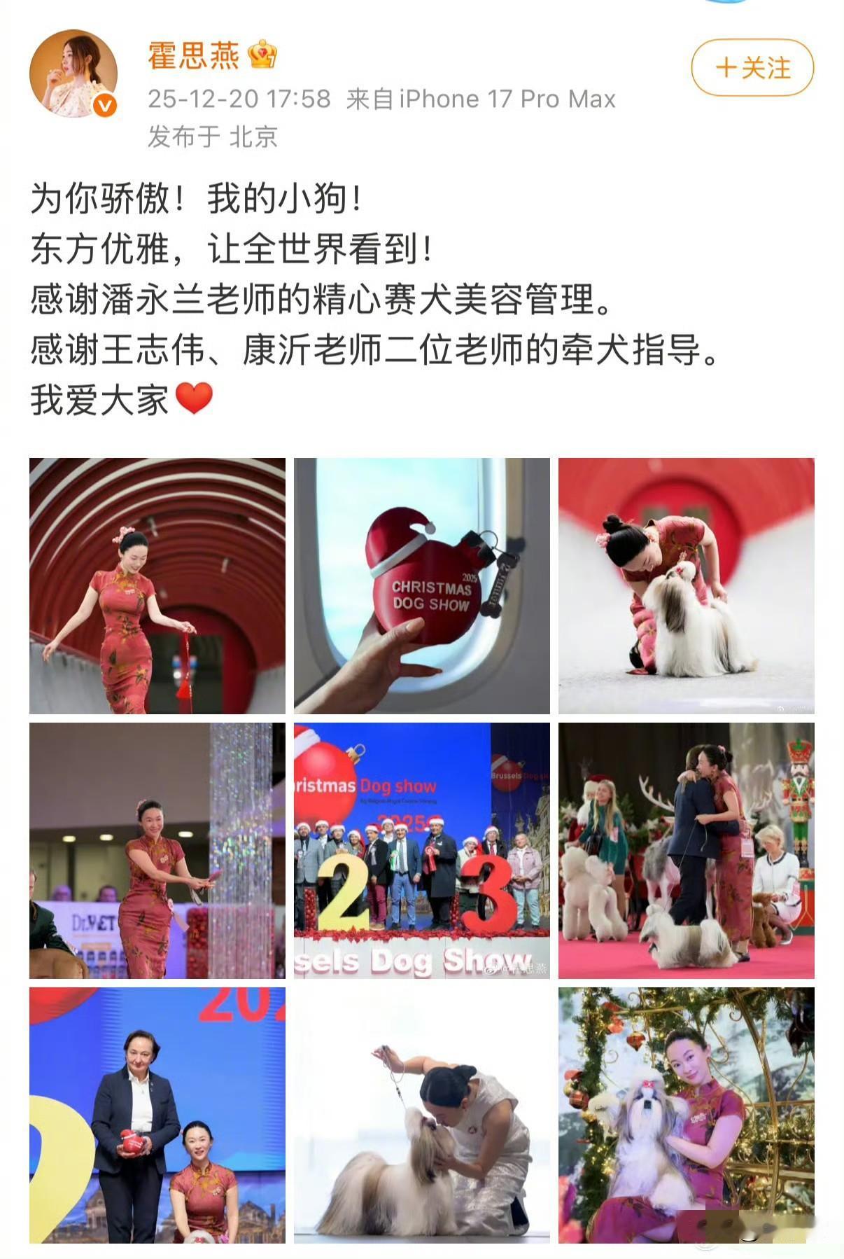 中国土狗逆袭欧洲百年大赛!霍思燕旗袍亮相震惊全场! 太提气了!霍思燕带着自家西施犬,跑去欧洲顶级犬展踢馆了! 这比赛办了135年,今年有上万只全球名犬竞争。 咱这中国本土犬种,愣是力压群雄,夺了总冠军! 霍思燕一身红旗袍登场,堪称优雅踢馆。 这不仅是狗狗赢,更是审美和文化的一次亮相。 西施犬的胜利证明,可爱又能打,中国风也能站上世界巅峰。