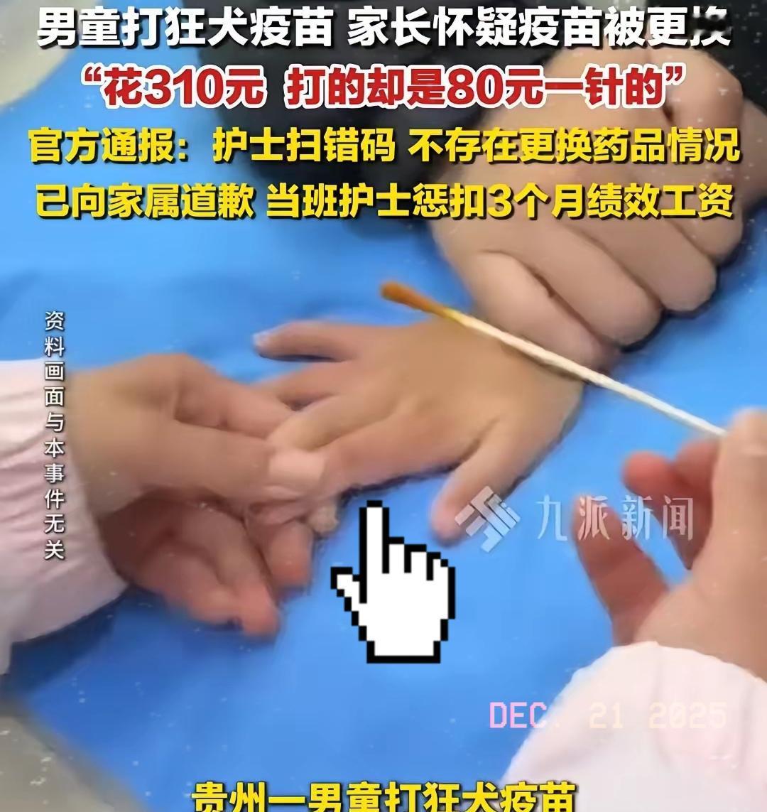 贵州,男子带着孩子去打狂犬疫苗,他选择的是310元的针剂,结果看到护士录入的是80元一针,他立即质问对方:“你们怎么可以这样?我花了高价钱,你们却用低价的产品给孩子接种,必须给我个说法!”护士发现问题后赶紧核查,才发现是录入错误,但这根本打消不了男子的猜忌。 家长花高价求个安心,却被系统登记的低价疫苗吓出一身冷汗,这哪是简单的“操作失误”,分明是流程规范形同虚设。疫苗接种有“三查七对”的铁规矩,扫码登记这种关键环节怎能马虎? 不让看空盒、查不到清晰批号、制止拍证据,这些操作比录错信息更让人起疑。扣绩效的处罚治标不治本,基层接种该补的是“双人核对”“全程透明”的硬流程,而不是靠家长火眼金睛维权。 花钱买服务,知情权和公平交易权不能打折扣。疫苗安全容不得半点疏忽,你觉得该怎么让接种信息真正做到可查可溯?