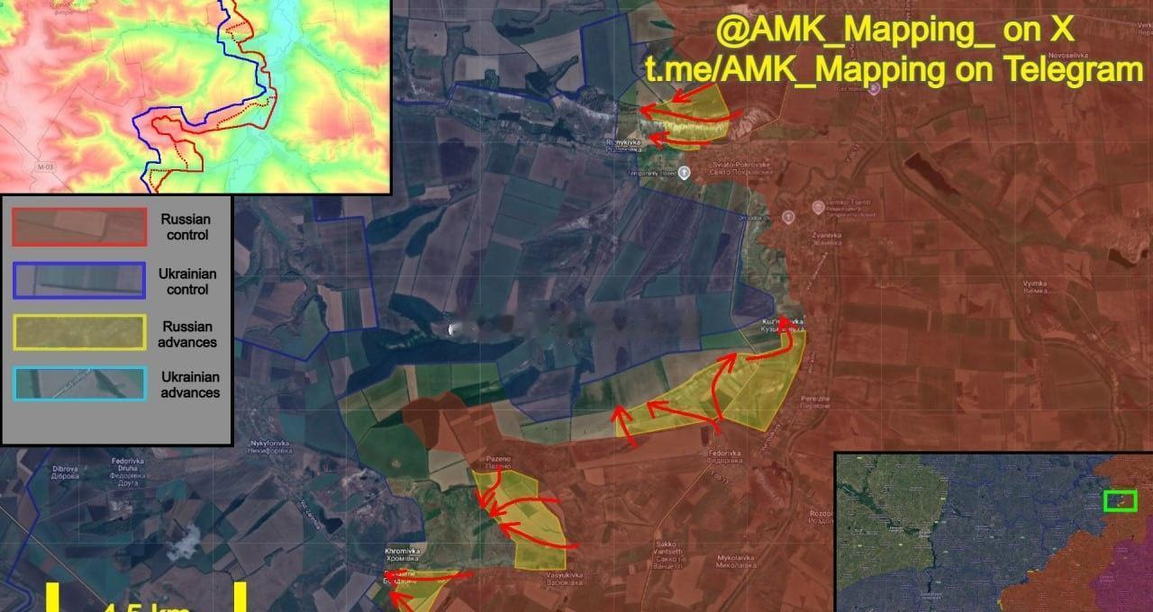 过去一周,俄罗斯军队在赖-奥列克桑德里夫卡方向继续取得重大进展,在四个不同区域展开推进。 在东北方向,俄军在密集的炮火和无人机掩护下,突破战术高地边缘的防御工事,占领了斯维亚托-波克罗夫斯克西北部的森林区域,并夺取了北部树线阵地。 在南部,俄军从费多里夫卡地区向北推进至峡谷,控制了峡谷及附近的林场。随后,他们向东北方向渗透至库兹米尼夫卡,占据了该村庄南部民宅。 在西南方向,俄军继续清理帕泽诺与瓦苏基夫卡之间的乌克兰突出部。他们夺取了帕泽诺-瓦苏基夫卡公路剩余路段,以及西部和西南部的树线阵地,最终进入帕泽诺西南部的林间峡谷。 在更西南部,俄军从瓦苏基夫卡西部推进至邻近的邦达尔内村,占据了该村东部民宅。其他突击小组则在南部四条不同树线阵地夺取了据点。 + ~11.79平方公里有利于俄军。 欢迎加入: 俄乌局势新进展二战日本集中营女性遭遇曝光海岸猎人水相[超话]