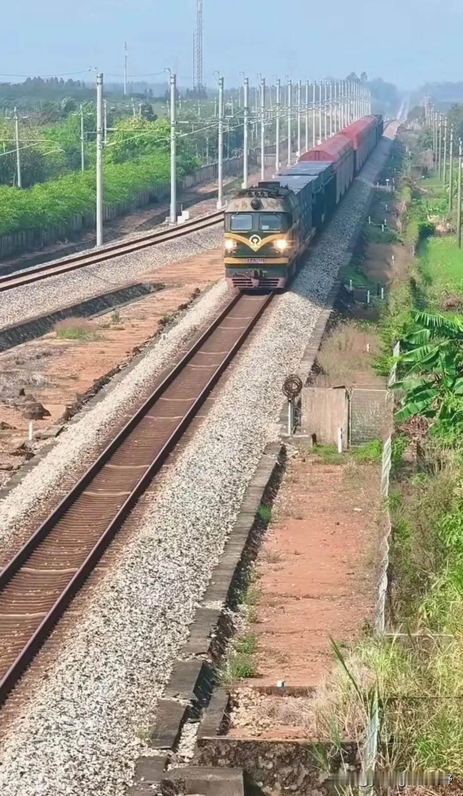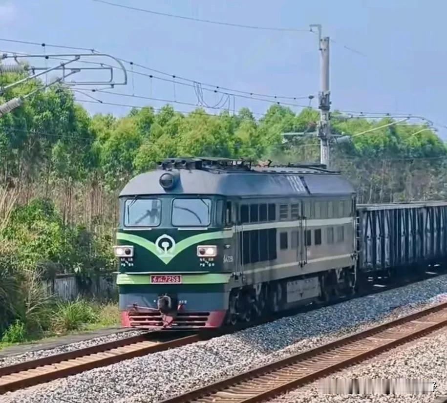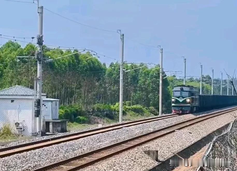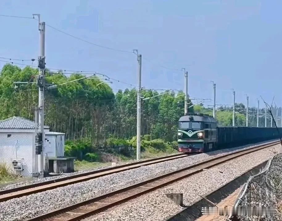 湛江西站往南有两条铁路线引出,一条是粤海铁路通往海南,这是一条单线非电气化铁路。另一条则是通车没几年的东海岛铁路,是一条单线电气化铁路,但常常却是东风4B内燃机车牵引。虽然同样都是东风4b内燃机车,但两条线路上的机车涂装却不一样,配属不知道是否一样呢?