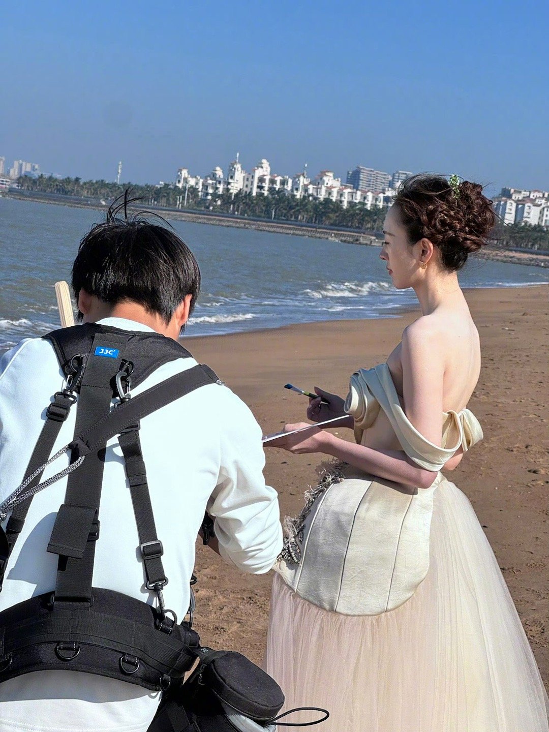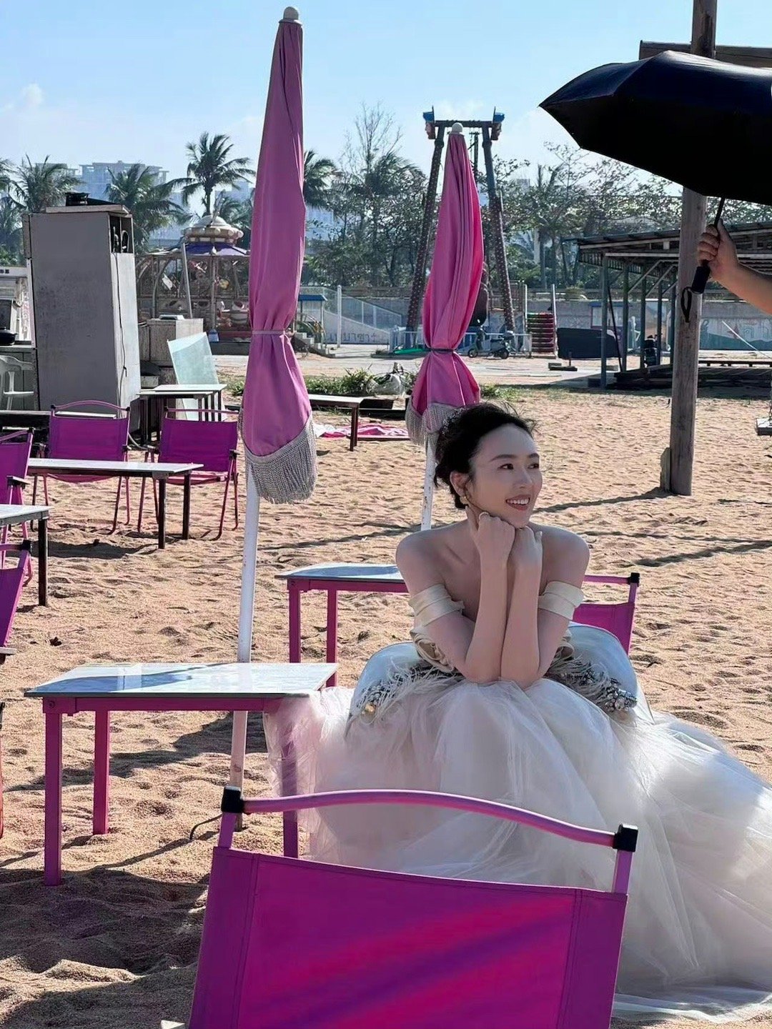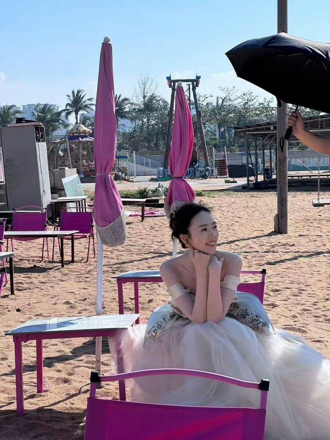 童瑶风格大变 被童瑶这组海边路透美到了!一袭立体玫瑰纱裙浪漫又轻盈,海风拂动轻纱,胸前的玫瑰与她的笑颜相映生辉。她整个人笼罩在一种前所未有的温柔光晕里,举手投足间尽是惊艳,这风格真是为她的美开启了全新篇章。