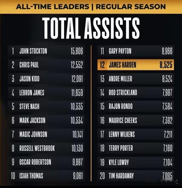 詹姆斯哈登迎里程碑,有可能会将得分和助攻同时进入历史前十!这项壮举目前历史只有勒布朗詹姆斯能够做到! 哈登鏖战41分钟,拿下21分4篮板10助攻2抢断,正负值+24! 依靠本场送出的10次助攻,哈登生涯助攻数来到8529次,成功超越安德烈-米勒升至历史第12位!助攻距离历史前十还差532次!