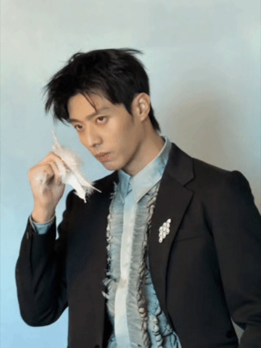 . 陈靖可不语一味地撒羽毛 蓝色羽毛衬衫别出心裁,似灵动音符跳跃。油画感背景与撒羽毛动作相融,出发图秒变时尚大片。陈靖可这是要在星光大赏掀起一场浪漫风暴,炸场预警已拉响!