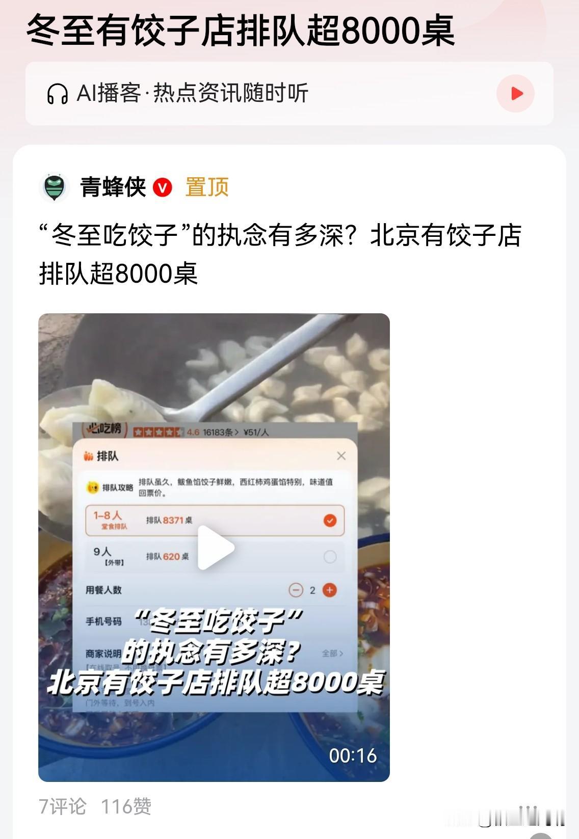 北京一家饺子店排队订饺子的人有8000桌,这个用餐量确实令人咋舌,说明北方人冬至吃饺子的执念有多深。 南方人习惯吃汤圆、年糕,还没有听说有这种火爆场面。 门口商场一家饺子店也是人头攒动,吃饺子的人也不少。一家人在商场、超市购购物,赶到饭点再吃上一份热乎乎的水饺,也算是过节应景了。 老家以前称呼饺子为扁食,和陕西人的叫法一样。做饺子馅也不用生肉,而是把五花肉炖熟了,剁碎和在馅子里。 那时候的荠菜也是真正地里野生的,肉香混着荠菜香,还没吃就把人香迷糊了。 包的扁食也非常大,比现在的饺子要大得多,但人的饭量也大,就是小孩子也能吃十个八个。现在的人食量反而变小了,一般5-6个就吃饱了。 那时候吃的东西比较寡淡,油水少,一年能吃上1-2次扁食就不错了。大人每天为了生计累死累活,也没有心思过多地钻研吃食。 现在则冰箱里常长不断饺子,早上蒸着吃当早餐,不想做饭了下一碗。自己包的吃腻了,还可以到外面的饺子店换换口味。 一种馅儿的饺子吃腻了,可多准备几种馅儿。猪肉芹菜、荠菜、羊肉白菜、韭菜鸡蛋的饺子,都包一些,想吃哪种下哪种。 今天又听说一种牛肉萝卜馅的,立刻又有想试一试的冲动,等冰箱里的饺子消耗一部分再说。 冬至的早晨,吃上一碗热乎乎的饺子,再加上一个荷包蛋,浑身发热,这个冬天耳朵也不怕冻掉了。