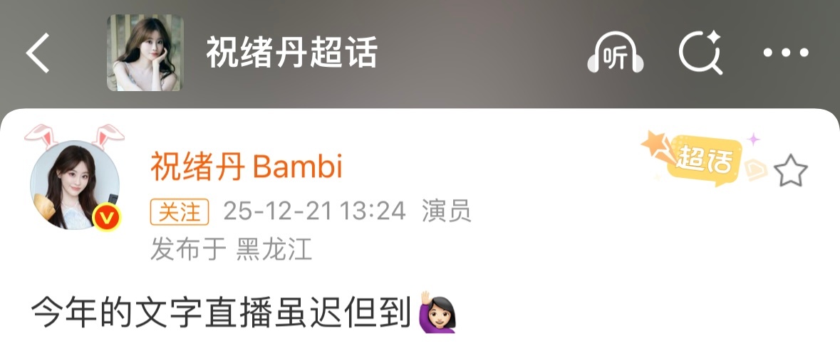 祝绪丹又文字直播了 今天的活动直接在超话里全程文字报备,这谁能不爱!真诚永远