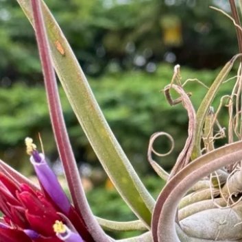 种植 🍂空气凤梨的养护方法1. 光照:空气凤梨喜欢充足的阳光,但也能适应半阴的环境。在养护空气凤梨时,应将其放置在光线充足的地方,如窗台、阳台等。如果光照不足,空气凤梨的生长会受到影响,甚至可能导致植株死亡。2. 水分:空气凤梨的水分来源主要是空气中的湿度。在干燥的环境中,可以通过喷水的方式为空气凤梨提供水分。喷水时要注意不要将水直接喷到叶片上,以免引起病害。此外,还可以将空气凤梨放在装有水的托盘上,让植株从水中吸收水分。3. 温度:空气凤梨对温度的要求较为宽松,一般在15-30℃之间都能正常生长。但在低于10℃的环境下,空气凤梨的生长会受到影响。因此,在冬季要注意保暖,避免将空气凤梨放置在寒冷的环境中。4. 肥料:空气凤梨对肥料的需求较低,一般不需要施肥。但如果长时间没有浇水,可以在喷水时加入一些稀释的液体肥料,以补充植株所需的养分。5. 繁殖:空气凤梨的繁殖主要依靠孢子和分株两种方式。孢子繁殖是将空气凤梨放置在潮湿的环境中,让其自然产生孢子,然后播种在湿润的介质上。分株繁殖是将空气凤梨的侧芽剪下,晾干后插入湿润的介质中,等待其生根发芽。6. 病虫害防治:空气凤梨的病虫害较少,但仍需注意观察植株的生长状况。一旦发现病虫害迹象,要及时采取措施进行处理,以免影响植株的生长。