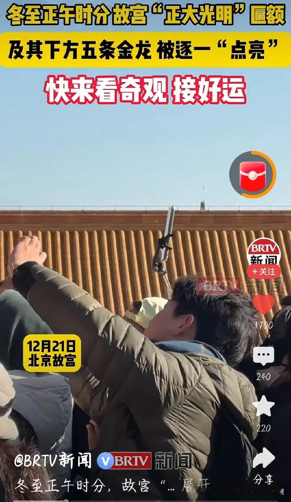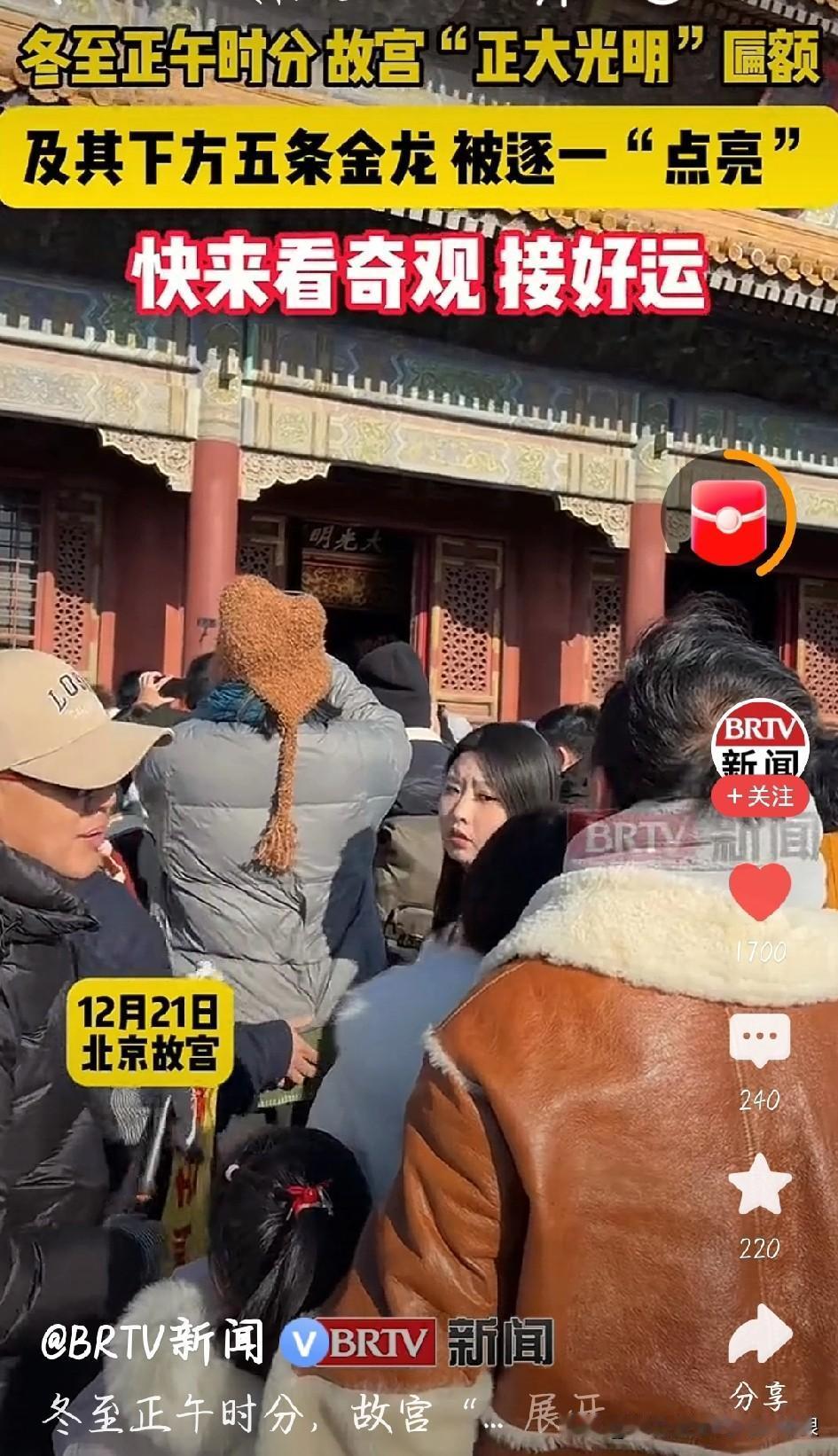 太绝了!故宫冬至的“光影魔术”,古人智慧服了 冬至正午的故宫,又上演年度名场面!乾清宫的“正大光明”牌匾,被一束阳光精准点亮,连下面的五条金龙都金光闪闪,现场游客全在惊呼抓拍。 这可不是灯光秀,是老祖宗玩了600年的“硬核操作”!北京冬至太阳角度最低,刚好能越过宫殿屋檐,再经地面光滑的金砖反射,直直照到匾额上,分毫不差。 古人没计算器,却算准了太阳轨迹、宫殿朝向,连地砖工艺都掐得死死的,才造出这每年一次的限定奇观。 最妙的是寓意,冬至夜最长,偏在这时让“正大光明”发光,像是在说“再暗也有光亮”。这中式浪漫和智慧,真的越品越绝! 故宫的金色琉璃瓦是哪里烧制的 故宫冬至正大光明牌匾被金光点亮 故宫冬至金光奇观