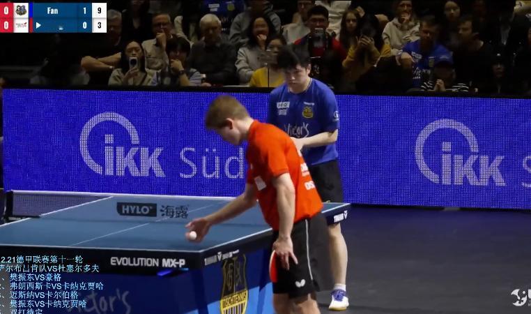 德甲快讯:笑死我了, 第一局东哥11:2拿下豪格, 中间休息, 东哥教练一句话也不说, 哈哈,他教练原来好像打网球的, 技战术估计还没有东哥厉害, 也不指点东哥, 就是给送个递饮料。 第二局 东哥开局连输2球, 然后就是王者进入新手村的感觉, 东哥已经很让球了, 结果这孩子发球还失误, 11:5拿下
