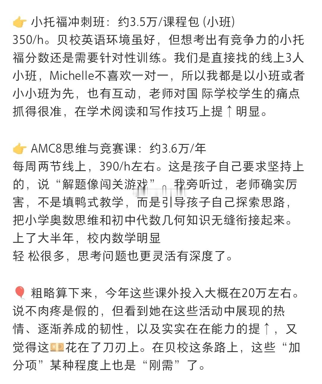 一位深圳妈妈分享孩子在福田贝赛思的开销: