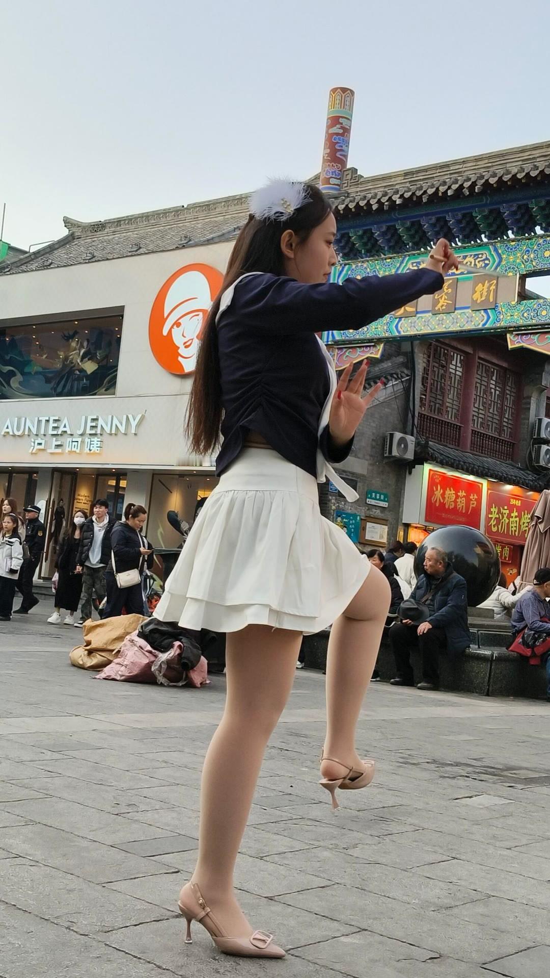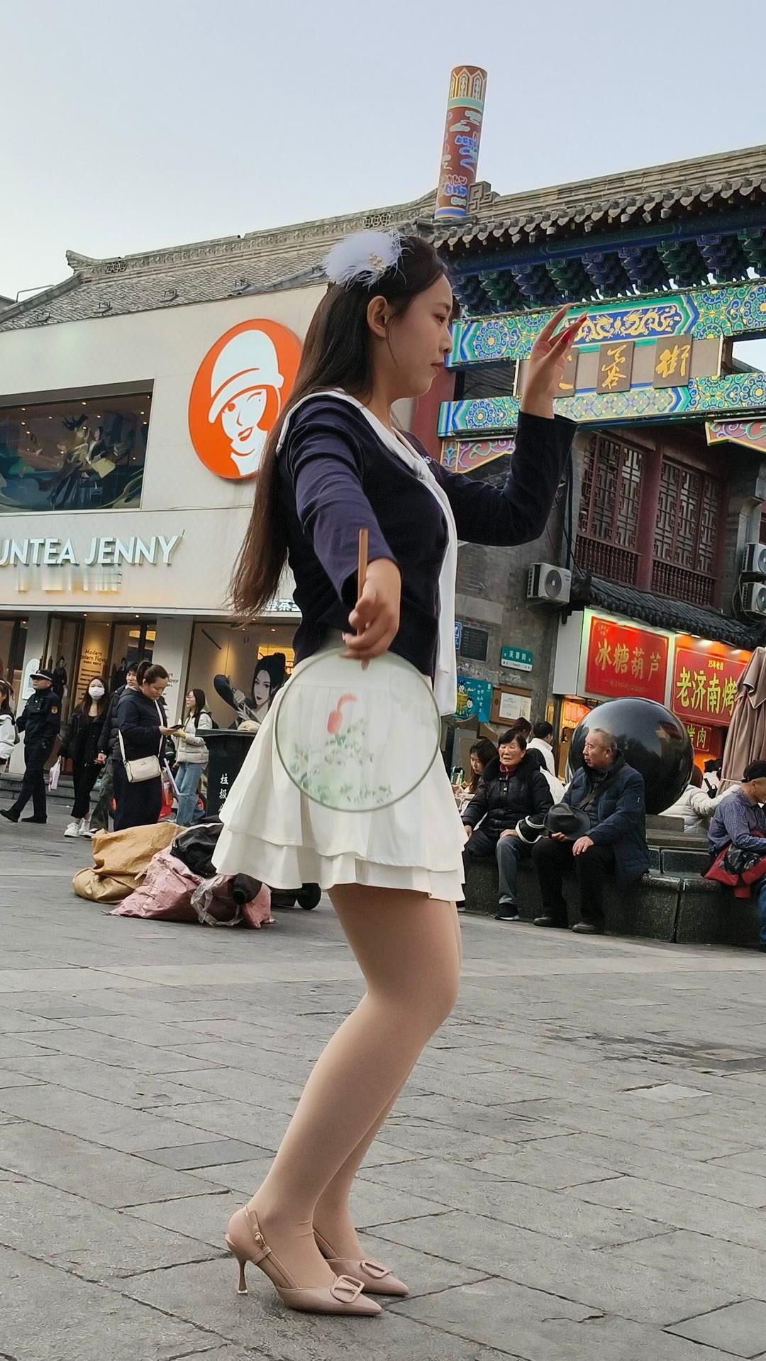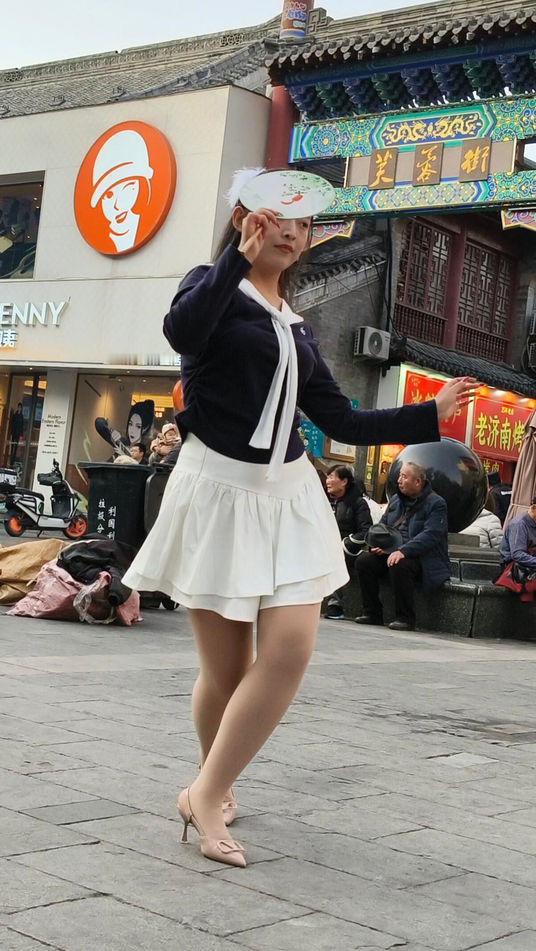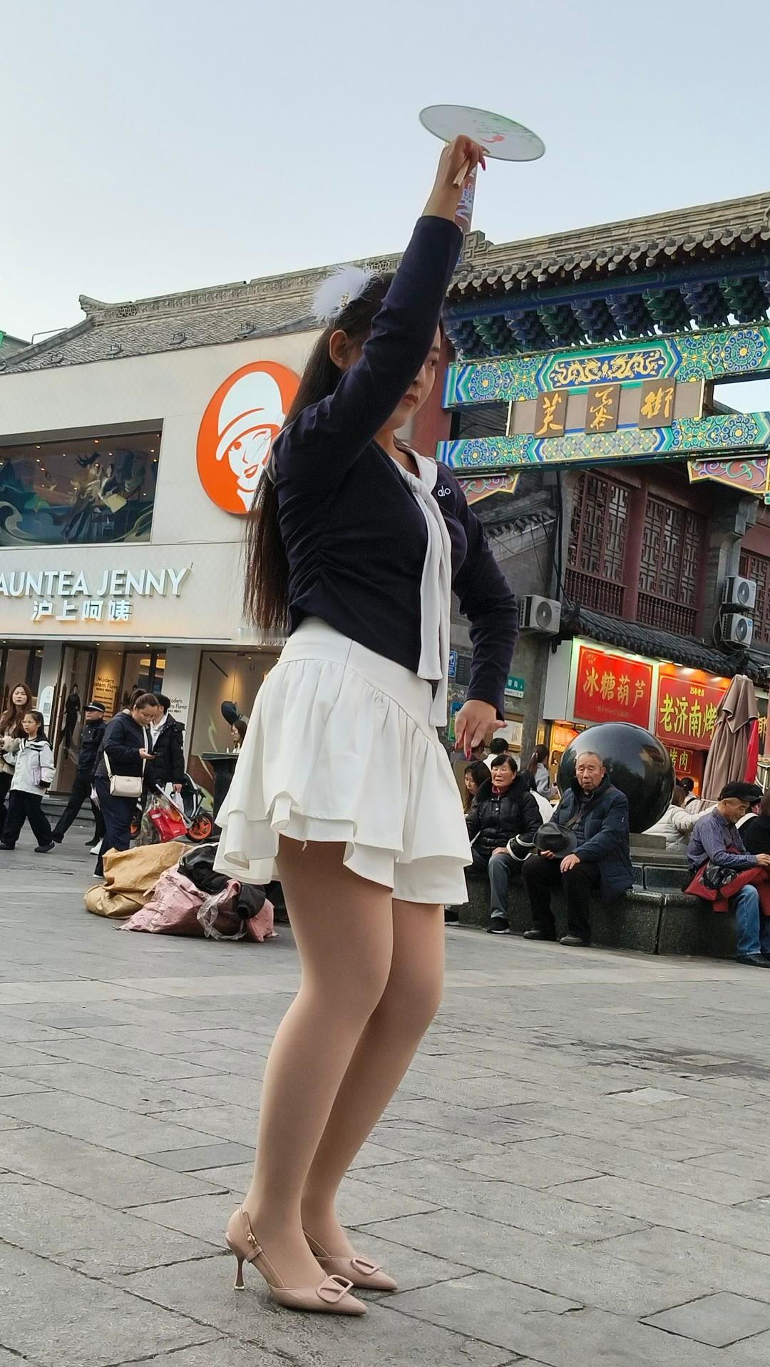 白衬衫配深色马甲短裙,搭肉色丝袜与黑平底鞋,职场通勤优雅利落。每日穿搭