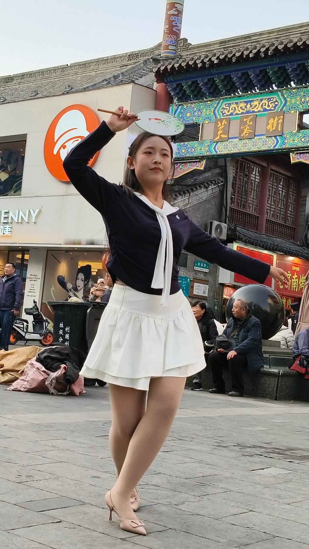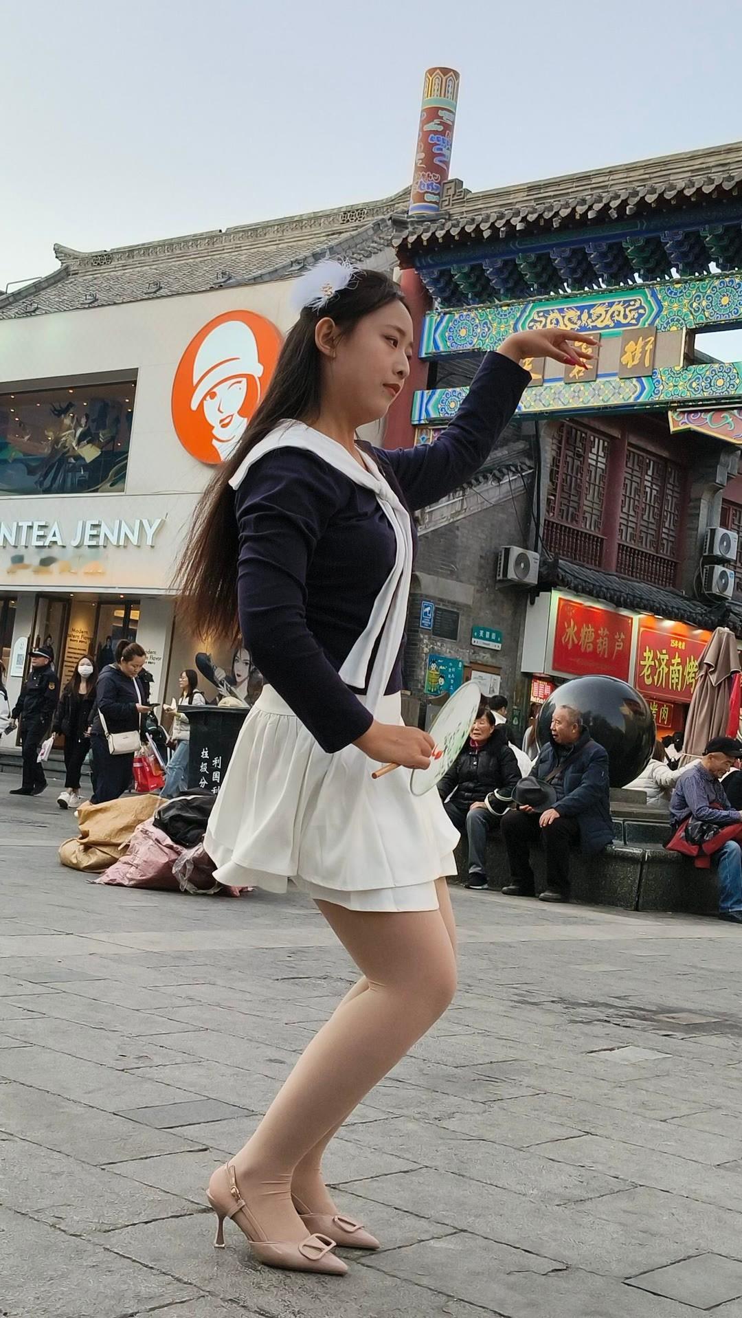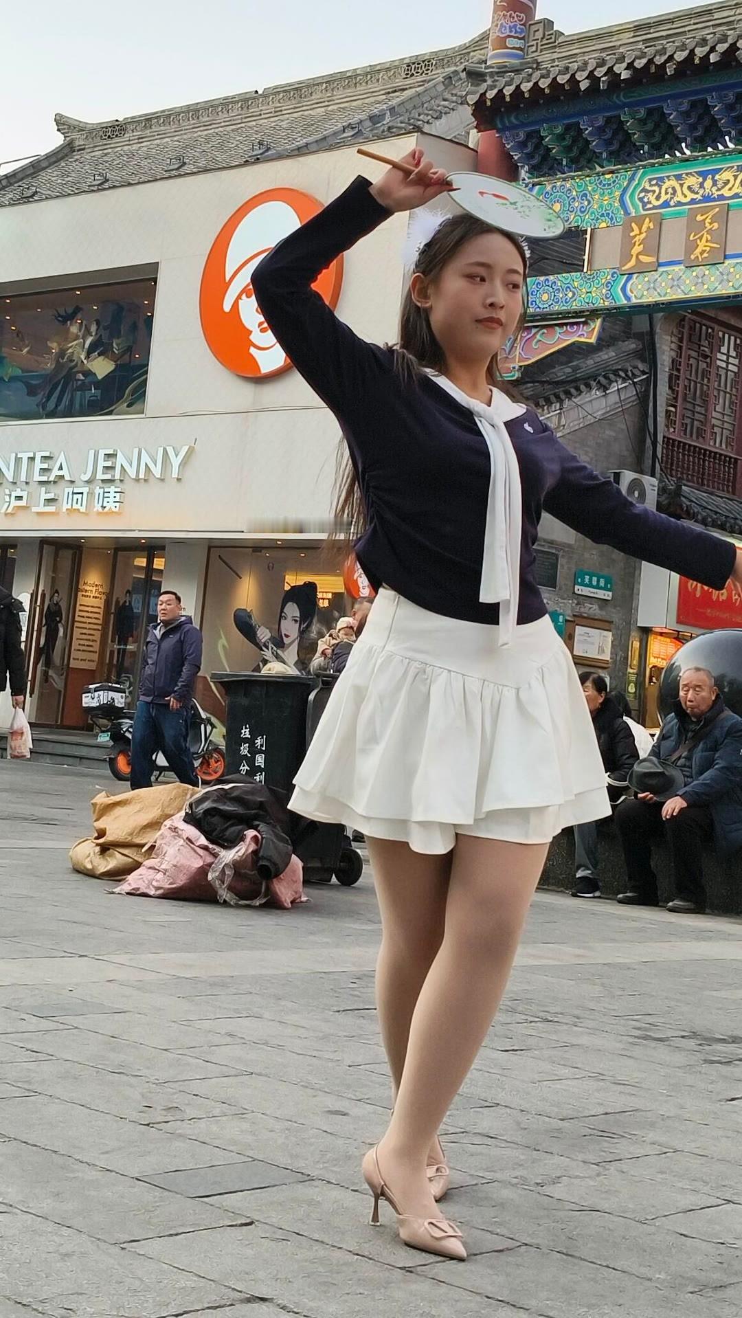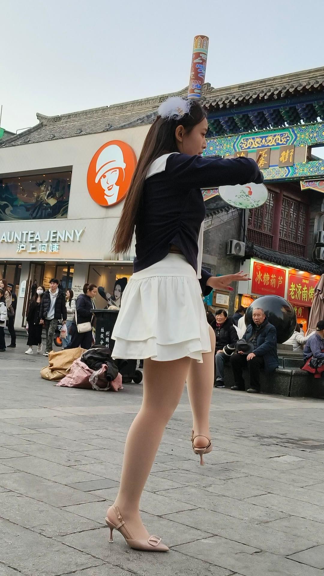 白衬衫配深色马甲短裙,搭肉色丝袜与黑平底鞋,职场通勤优雅利落。每日穿搭