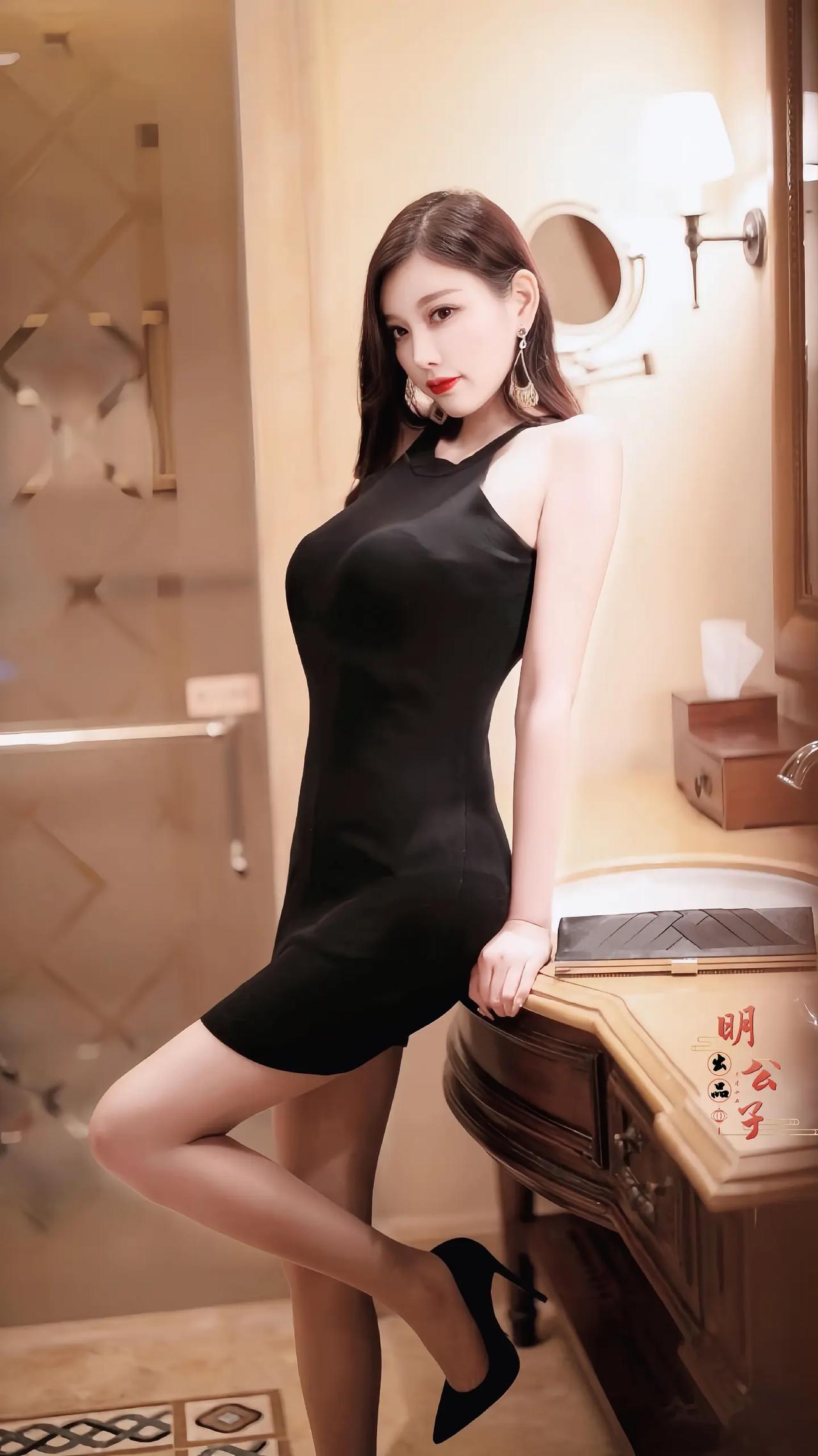 优雅黑裙,气质满满,镜前一瞥,尽显魅力!