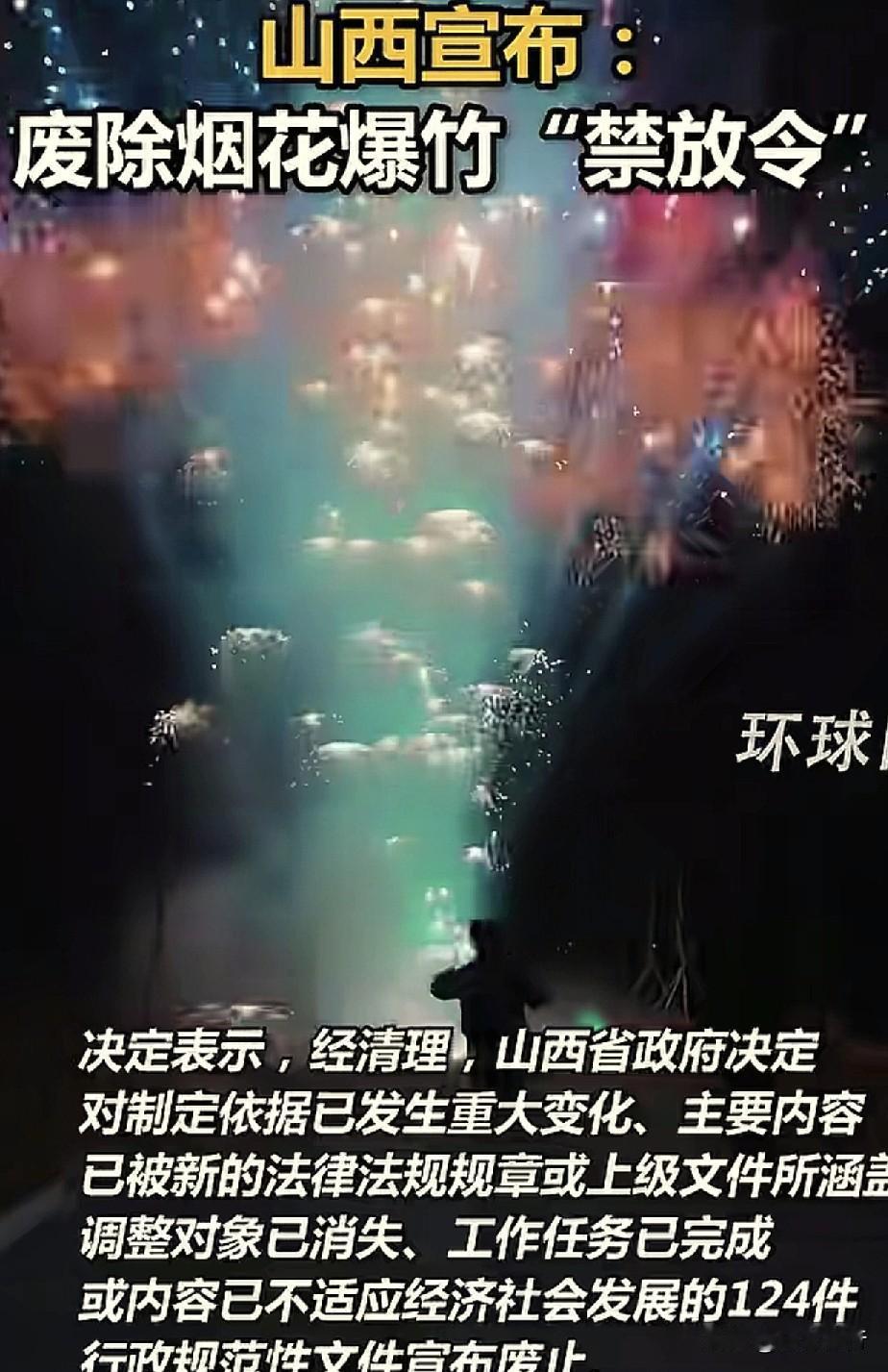 最新消息! 这次山西走在咋全国的最前面。 根据报道称,山西省首先宣布,废除烟花爆竹“禁放令”。 过年放鞭炮,也是我国一个悠久的传统了。但是,自从禁止放烟花后,每到过年都是安安静静的,一点年味也没! 万万没想到,山西竟然首先打破了烟花爆竹的禁放令。 这才是中华民族文化的脊梁,我们是山西大槐树的族群,山西终于把华夏文化的明灯点亮了,给山西点赞! 有些羡慕山西了,河北什么时候也能废除“禁放令”呢?