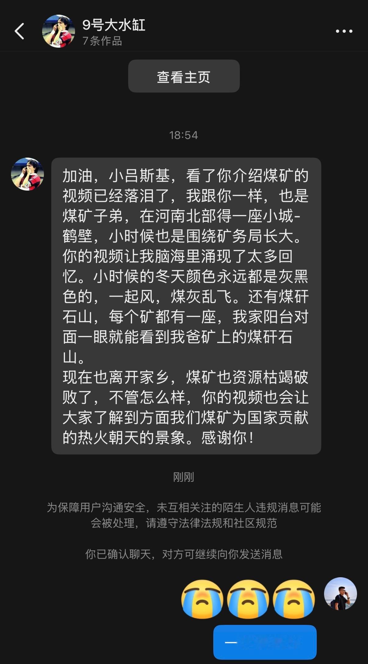 一边是大老师、粉丝发来留言给予鼓励一边是家里人发来消息,鸡西的煤矿又发生事故了视频里我只潦草说了句很多人因为事故走了但真的很多煤矿工人因事故残疾或永远留在地下那时候最常听到一句话就是煤矿工人是三块石头夹块肉希望里面的人都能平安无事