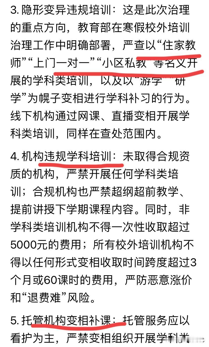 教育部2026严禁补课新规来了!5类违规零容忍。在职教师明明知道补课效果微乎其微,还带头剥夺学生的休息时间,利用学生“榨取”家长的钱财。增加学生和家长负担。 现在许多在职教师在周末假期偷偷补课捞金,补课费是一年工资的几倍。 说好减负,现在补课依然猖獗,不是在摧残孩子身心健康?对于补课深恶痛绝,对于在职教师补课更甚。 补课一经查实,要是开除教师队伍,他们绝对不敢补课。 如果只是批评、处分等不痛不痒的措施,我断定这补课之风是禁不了的,受到的处罚措施跟补课赚的钱差远了。处罚力度太轻震慑不了。 那些家长也是极蠢的,总以为补课是灵丹妙药,跟风掏钱卷补课。 你们也不想想,孩子整天在学校都没学明白,还指望周末几小时? 上有政策下有对策,应该上升到法律层面来禁止,重在落实! 很悲哀!每年都是喊口号,哪个教育局真正执行过? 教育能否让孩子们真正的幸福起来,取消课外补课。