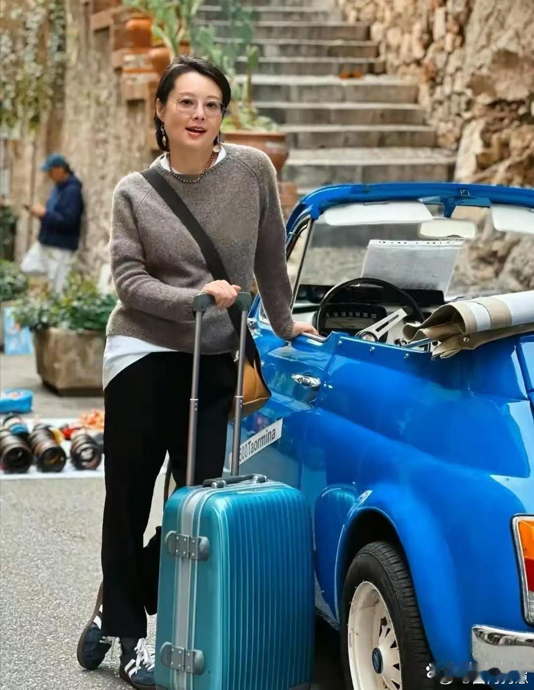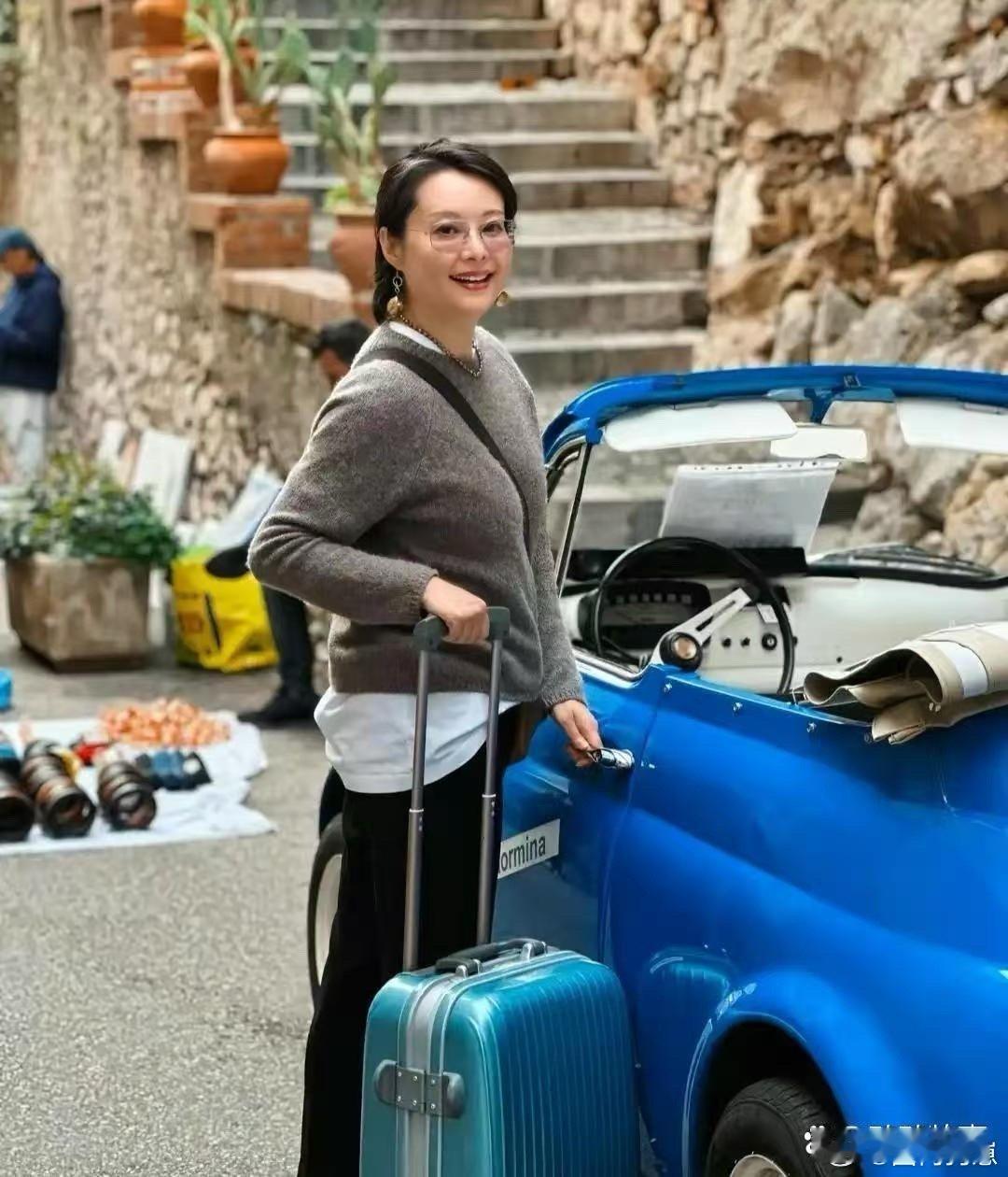 53岁袁立在意大利独自自驾太飒了!拉着行李箱笑容满面,状态好到飞起,看着哪像年过
