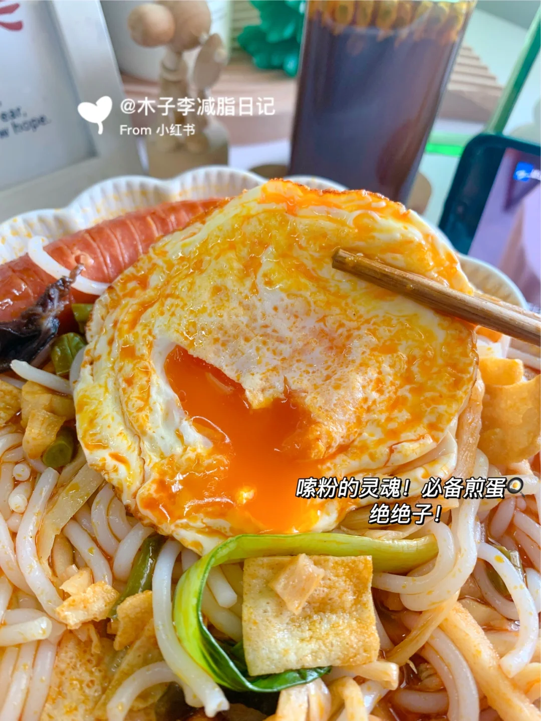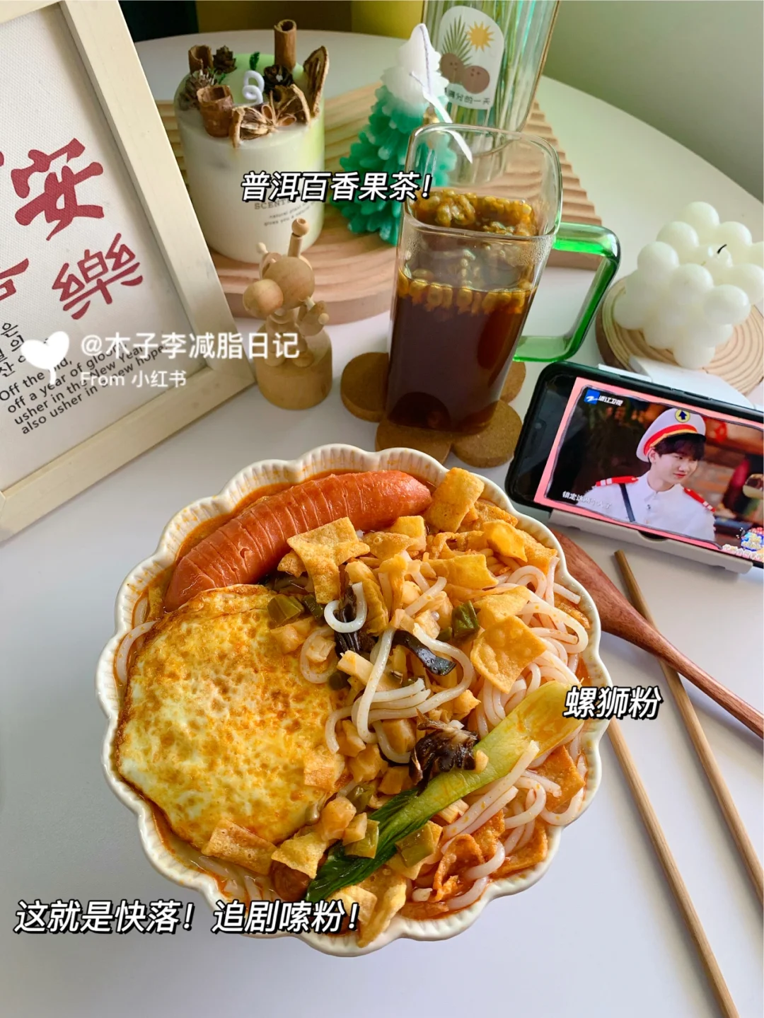 🥙午餐:螺狮粉➕煎蛋➕鸡胸红肠➕百香果普洱