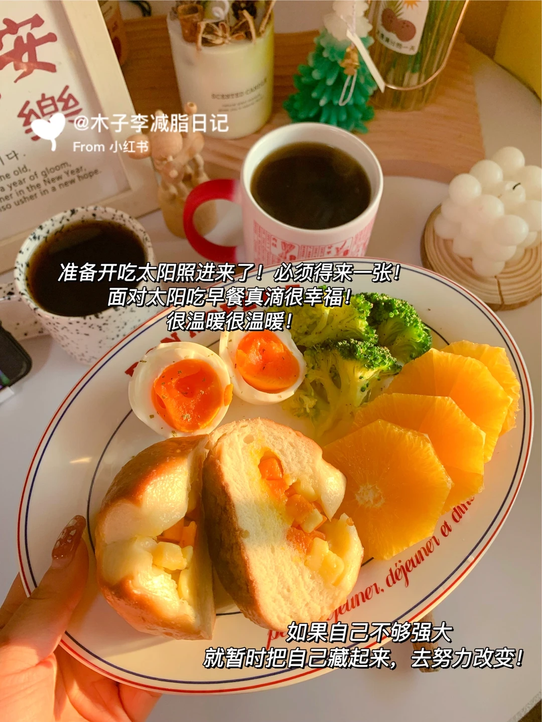 🍳早餐:鸡蛋➕橙子➕西蓝花➕奶酪碱水球➕小仙汤➕普洱