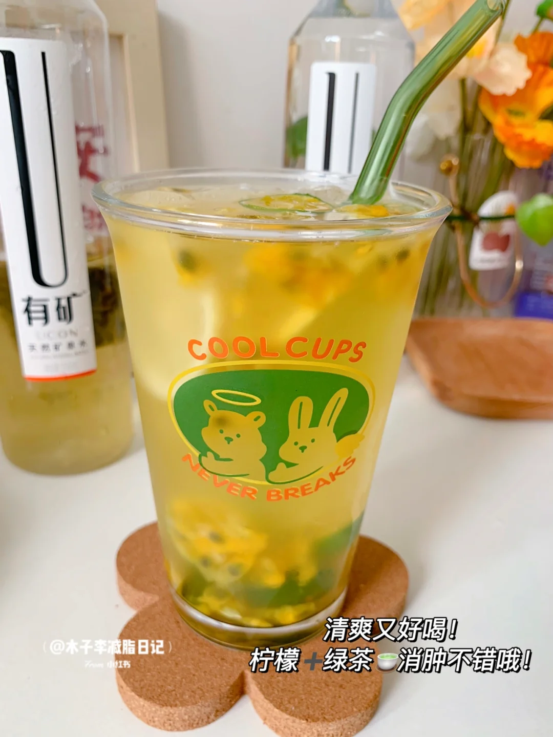 💧一杯减脂.青柠百香果绿茶🍵~快乐就是这么简单!多喝水皮肤好好喔.每天记得喝够8杯水!
